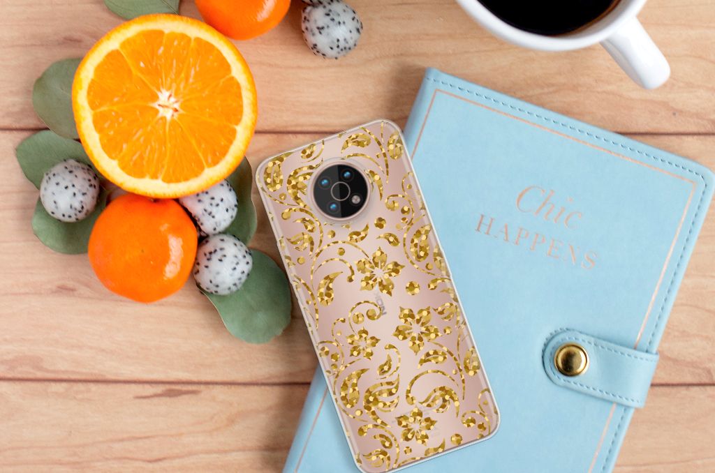 Ben je op zoek naar een uniek telefoonhoesje voor je Nokia G50? Dan ben je bij B2C Telecom aan het juiste adres! Speciaal voor jou hebben we dit prachtige Gouden Bloemen design in onze collectie hoesjes opgenomen. Het design wordt bedrukt op een TPU Case en is gemaakt van flexibel rubber. Het design wordt alleen aan de bovenkant van het hoesje bedrukt en de randen blijven transparant. Aan de zijkanten zijn uitsparingen gemaakt waardoor je met gemak alle knoppen en poorten kunt bedienen. Wij adviseren om dit hoesje in combinatie met een screenprotector te gebruiken voor een langere levensduur van je telefoon. Wil je dit design hoesje nog iets extra's geven? Voeg dan gratis je naam of een quote toe! Is dit design hoesje toch niet helemaal wat je zocht? Ontwerp dan zelf een hoesje in ons ontwerpprogramma.