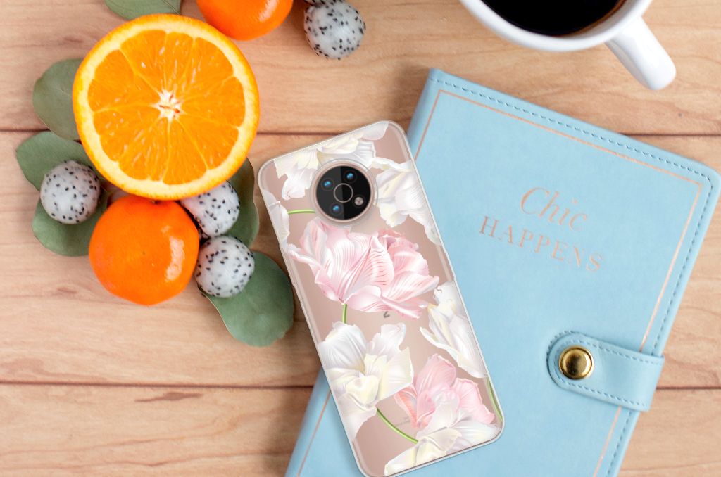 Een bosje bloemen doet een mens (en zijn smartphone) goed. De witte en roze bloemen op deze Nokia G50 TPU Case geven jouw smartphone een zeer mooie uitstraling. Je wordt er ook meteen een stuk rustiger van als je aan het appen of aan het bellen bent. Valt dan je telefoon op de grond, dan zal er dankzij de tpu case met het design Lovely Flowers ontstaan. Helemaal niet als je er een screenprotector bij hebt gekocht. Onze tpu cases met roze en witte bloemen zien er zeer prettig uit en zijn heel praktisch, getuige onder meer de opstaande randen en het flexibele materiaal. Alleen de achterkant van de tpu case wordt bedrukt met roze en witte bloemen. Op deze tpu case kun je trouwens ook een eigen ontwerp zetten. In een paar simpele stappen ontwerp je zelf een stand case met daarop jouw favoriete bloemen.