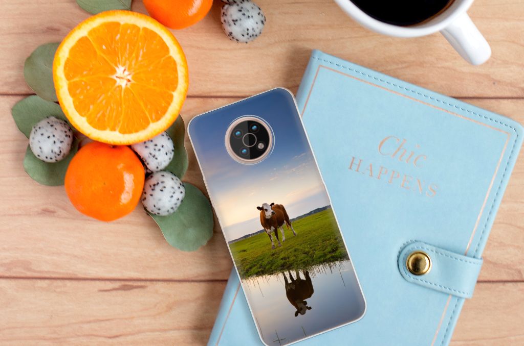Het levert een idyllisch plaatje op, dit hoesje met een koe en ondergaande zon op de achtergrond. Door een koe buiten te laten lopen en grazen, hebben ze minder kans om ziek te worden. De Koe graast het liefst met soortgenoten, al zijn deze een stukje van de koe op de case verwijderd. Dit levert ook een mooi plaatje op, zoals je kunt zien op dit design hoesje. Dit tpu hoesje met koeien ziet er flexibel uit en is voorzien van alle uitsparingen. Een Nokia G50 TPU Hoesje met koeien beschermt jouw smartphone vooral aan de achterkant en zijkanten. De zijkanten blijven transparant, de rest van het hoesje is bedrukt. Koeien herkauwen het liefst liggend, behalve wanneer het regent. Zo goed als grazen voelt voor koeien, zo duurzaam zal jouw smartphone blijven met dit design hoesje. Het TPU is schokabsorberend en niet te breken. De TPU case past altijd in je broekzak.