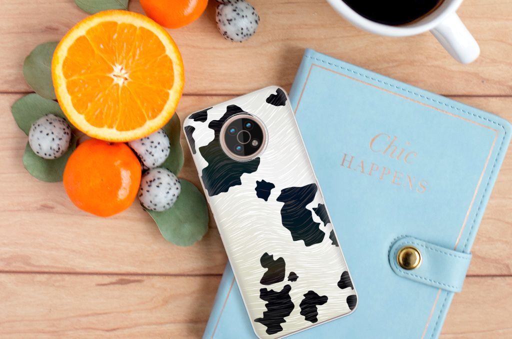 De vlekken op de huid van een koe hebben een camouflage functie. Met deze Nokia G50 TPU Hoesje met Koeienvlekken hoef je je geen zorgen te maken dat je smartphone schade oploopt. De koeienvlekken zetten we op een tpu case op het moment dat jij je bestelling plaatst. Hierdoor krijgt jouw telefoon een print van koeienvlekken van zeer hoge kwaliteit. Ook omdat we het bedrukken van deze case geheel zelf doen. Jouw telefoon is vooral aan de achterkant en zijkanten goed beschermd. De print van koeienvlekken komt op de bovenkant van het hoesje te staan, de randen blijven doorzichtig. Roofdieren zijn niet geïnteresseerd in koeien dankzij de vlekken op hun huid. Deze beschermende werking heeft ook jouw hoesje met koeienprint.