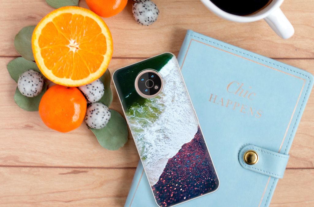 Ben je een beetje een artistiek type? Dan kan je wel eens enthousiast raken van dit smartphonehoesje. ‘Sea in Space’, zo noemt onze grafisch designer dit ontwerp. Dus mensen die van zon en zee kunnen genieten en tegelijkertijd van science fiction houden zullen deze case ongetwijfeld mooi vinden. Een beetje glitter en glamour zou je met een beetje fantasie ook nog wel kunnen ontdekken in dit design hoesje. Dit artistieke kunstwerkje is voor heel weinig geld te bestellen op onze website. Je krijgt er maximale bescherming van je Nokia G50 voor terug. Het design staat op een TPU Hoesje. Dit hoesje wordt alleen aan de bovenkant bedrukt en is zeer flexibel. De randen van het hoesje blijven transparant en worden niet bedrukt.