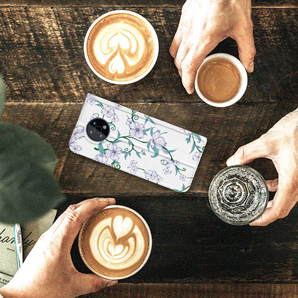 Witte bloemen staan voor puurheid, frisheid, helderheid en eenvoud. Geen wonder dus dat ze al heel lang populair zijn en ook prachtig staan op een telefoonhoesje. Niet iedereen houdt immers van kleurrijke designs. Toch graag bloemetjes op je Smart Cover maar zonder bonte kleuren? Dan is dit hoesje voor de Nokia G50 perfect voor jou. Dit populaire smartphonehoesje heeft één vakje voor een pasje of briefgeld en is aan alle zijden bedrukt. Met de standcase zet je je telefoon gemakkelijk neer, zodat je je handen vrij hebt als je bijvoorbeeld een video wilt kijken. De binnenkant van de standcase is van grijs PU-leer. Dat is fijn, omdat je daardoor niet snel vlekken ziet op je hoesje.