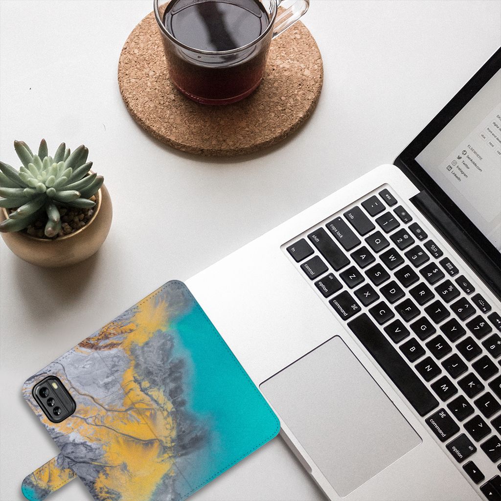 Dit Nokia G60 Bookcase met Marble Blue Gold is het waard om een blokje voor om te fietsen. Dit is echter helemaal niet nodig. Als je het hoesje met marmer blauw met goud nu bestelt heb je het supersnel in huis. Je kunt er bij wijze van spreken voor de brievenbus op blijven wachten. Je hebt diverse marmersoorten in veel verschillende kleuren. We hebben enkele mooie kleuren op design hoesjes gezet, zoals in dit geval marmer blauw met goud. Het marmer wordt bedrukt op alle zijden van het boekhoesje, dat beschikt over vakjes voor pasjes en briefgeld en een magnetisch lipje aan de buitenzijde. Verder heeft de case met marmer blauw met goud een houder van TPU. De rijkheid aan kleuren en variaties in afwerking is een fraaie eigenschap van marmer. Dit boekhoesje met marmer blauw met goud heeft ook veel schitterende eigenschappen en is de ideale bescherming voor jouw smartphone.