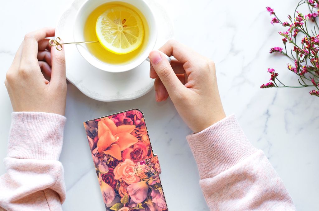 Bijna iedereen wordt wel blij van een bosje bloemen en dus worden we ook blij als er bloemen op ons boekhoesje staan afgebeeld. Dit boeket van roze, oranje en paarse bloemen is lekker opvallend maar geeft het Nokia G60 Hoesje ook een sierlijke uitstraling. Zo wordt je direct vrolijk als je bezig bent met jouw smartphone, bijvoorbeeld tijdens het appen of bellen. Waar je ook vrolijk van zult worden is de goede bescherming die dit smartphone hoesje biedt. Het is een boekhoesje waardoor alle zijden van jouw telefoon worden beschermd. Als hij dan per ongeluk een keer op de grond valt, is er niets aan de hand. Door het magnetische sluitlipje blijft ook het beeldscherm beschermd als hij de grond raakt.