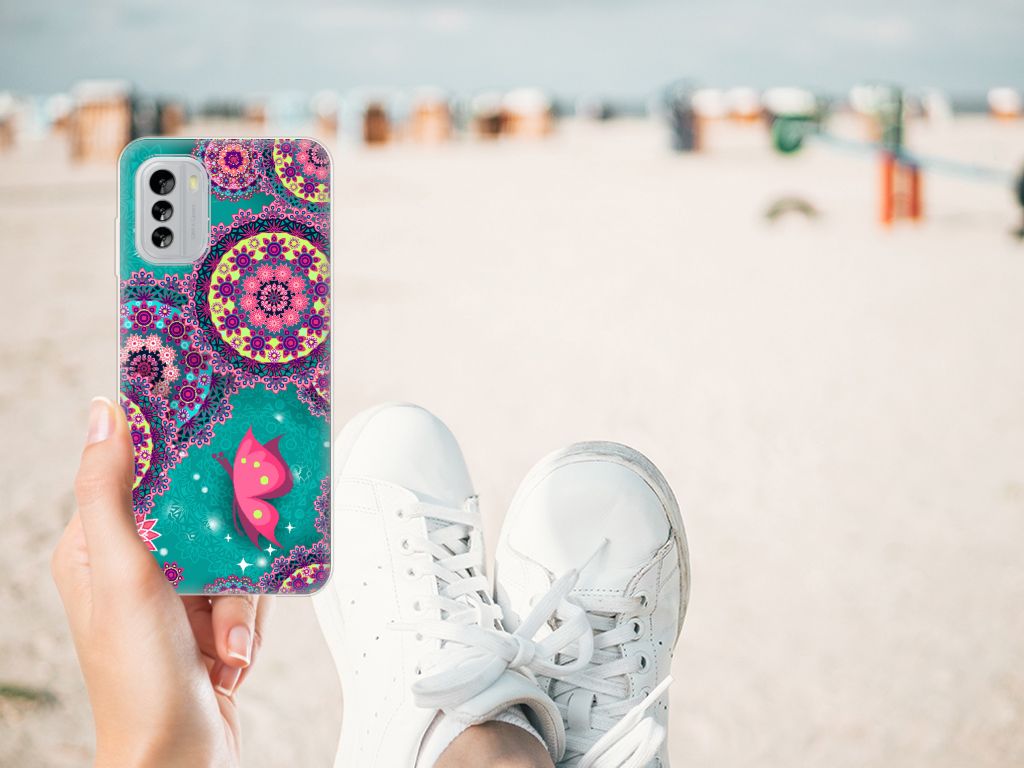 Deze opvallende Nokia G60 Hoesje maken met Cirkels en Vlinders is een ware eyecatcher. De meeste vlinders hebben een onopvallende vleugelkleur en dat kun je van de soort op dit hoesje ook zeker wel zeggen. Wij kunnen deze opvallende vlinders en cirkels op een zeer handige tpu case zetten. Deze hoesjes zijn gewild omwille hun flexibiliteit. Met onze geavanceerde printer zetten we de print van opvallende vlinders en cirkels op de achterkant van het hoesje. De case met vlinders en cirkels blijft aan de zijkanten doorzichtig, zodat je maximaal het design van je smartphone behoudt. Verder is je telefoon natuurlijk goed beschermd met deze tpu case met print van blauwe vlinders. De bovenkant wordt bedrukt, de zijkanten niet. Met een screenprotector bescherm je ook het scherm maximaal.