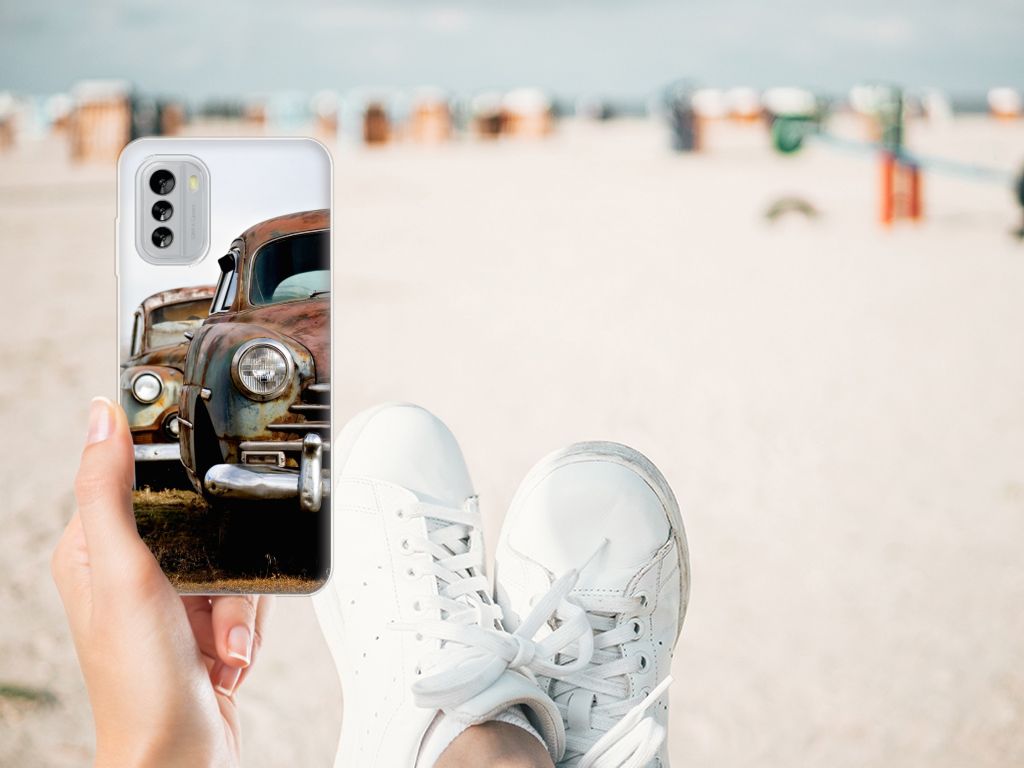 Autoliefhebbers met een voorkeur voor vintage zullen in hun nopjes zijn met dit design hoesje. We hebben een boekhoesje met print van Vintage Auto speciaal op maat gemaakt voor jouw smartphone. Door de achtergrond van dit hoesje krijgt de case met vintage auto’s echt een mooie retro look. Een Nokia G60 Siliconen Hoesje met foto is een zeer flexibel hoesje. Dit komt onder andere door het elastische en onbreekbare materiaal waarvan de hoes is gemaakt. Verder is de case zeer praktisch. Wat denk je bijvoorbeeld van de opstaande randen aan de voorkant. Verder beschikt de case ook nog eens over alle noodzakelijke uitsparingen. Een TPU case wordt alleen aan de bovenkant bedrukt. De randen blijven volledig doorzichtig.