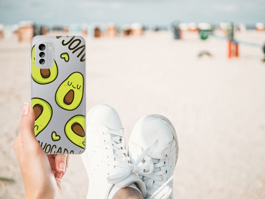 Avocado’s zijn niet alleen heel erg goed voor je, ze zijn ook super leuk op je telefoonhoesje. Dit unieke design vol schattige avocado’s zal jou en iedereen om je heen meteen opvrolijken. Nog een voordeel van dit design: deze avocado’s bederven nooit! Dit leuke Avocado Singing-ontwerp staat op een Telefoonhoesje met Naam voor de Nokia G60. Met deze vrolijke groene vruchten op je hoesje val jij zeker op. TPU is flexibel en onbreekbaar. Zo is je telefoon aan de achterkant en de randen heel goed beschermd. De case is aan de bovenkant bedrukt, de randen blijven transparant. Het TPU-hoesje is perfect te combineren met een screenprotector, zo zijn je telefoon en je beeldscherm perfect beschermd.