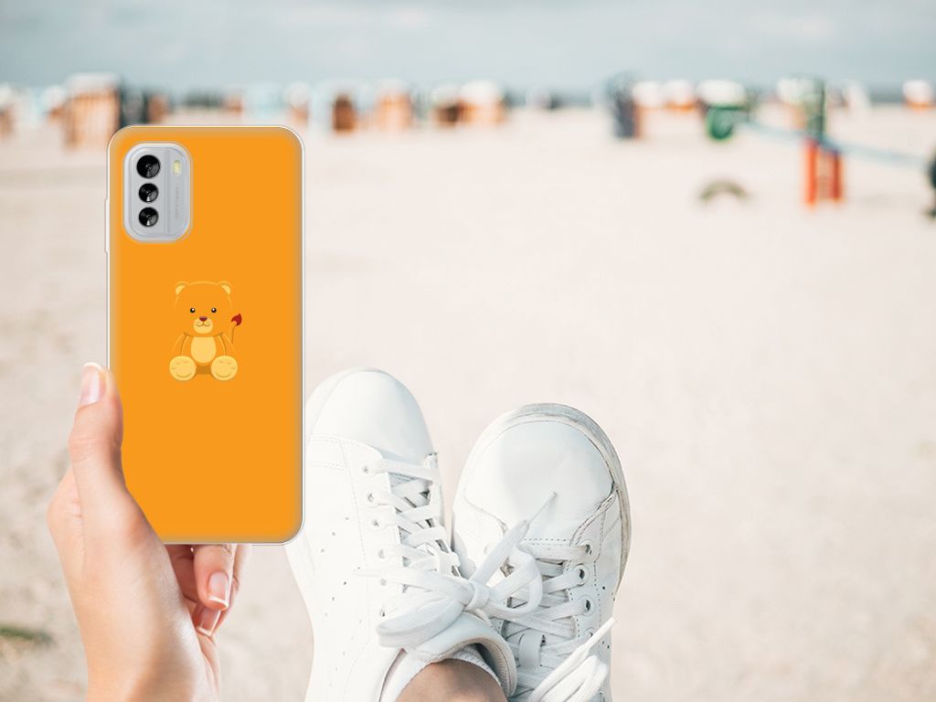 Dit vrolijke teddybeertje zou je het liefst willen knuffelen. Dat wordt lastig, op een telefoonhoesje. Maar dat betekent niet dat dit design niet evengoed onwijs schattig is. Het ontwerp is vanwege de oranje achtergrondkleur evengoed subtiel. Dit Baby Beer-design is perfect voor de knuffelberen onder ons. Dit design staat op een Telefoonhoesje met Naam voor je Nokia G60. TPU is flexibel en onbreekbaar. Zo is je telefoon aan de achterkant en de randen heel goed beschermd. De case is aan de bovenkant bedrukt, de randen blijven transparant. Het TPU-hoesje is perfect te combineren met een screenprotector, zo zijn je telefoon en je beeldscherm perfect beschermd.