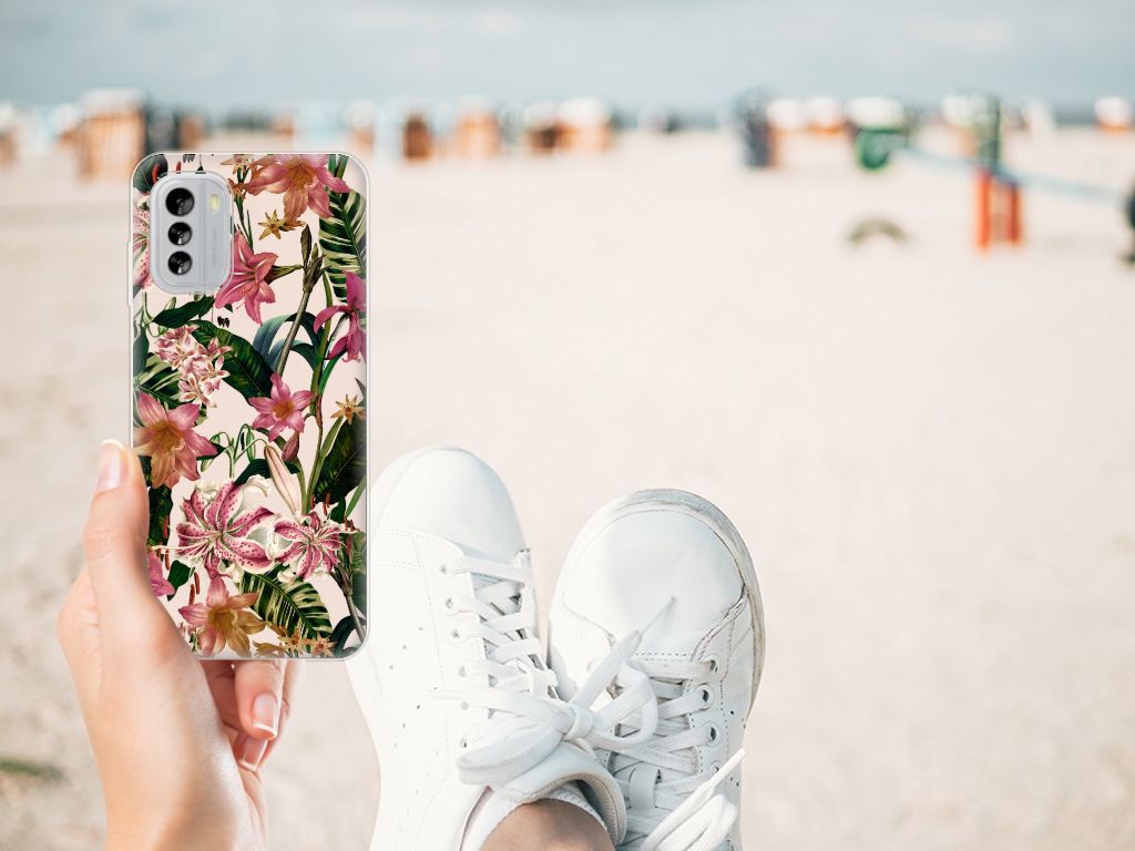 Dit Flowers design is een zegen voor de mens en zijn smartphone. De paarswitte bloemen en groene bladeren op deze Nokia G60 TPU Case geven jouw smartphone een zeer sierlijke uitstraling. Je wordt er ook meteen vrolijker van als je aan het appen, mailen of aan het bellen bent. Valt dan je telefoon op de grond, dan zal er dankzij de tpu case met paarswitte bloemen en groene bladeren geen schade ontstaan. Helemaal niet als je er een screenprotector bij hebt gekocht. Onze tpu cases met paarswitte bloemen en groene bladeren zien er zeer prettig uit en zijn heel praktisch, getuige onder meer de opstaande randen en het flexibele materiaal. Alleen de achterkant van de tpu case wordt bedrukt met paarswitte bloemen en groene bladeren, de randen blijven transparant. Op deze tpu case kun je trouwens ook in no time zelf foto’s van jouw favoriete bloemen zetten.