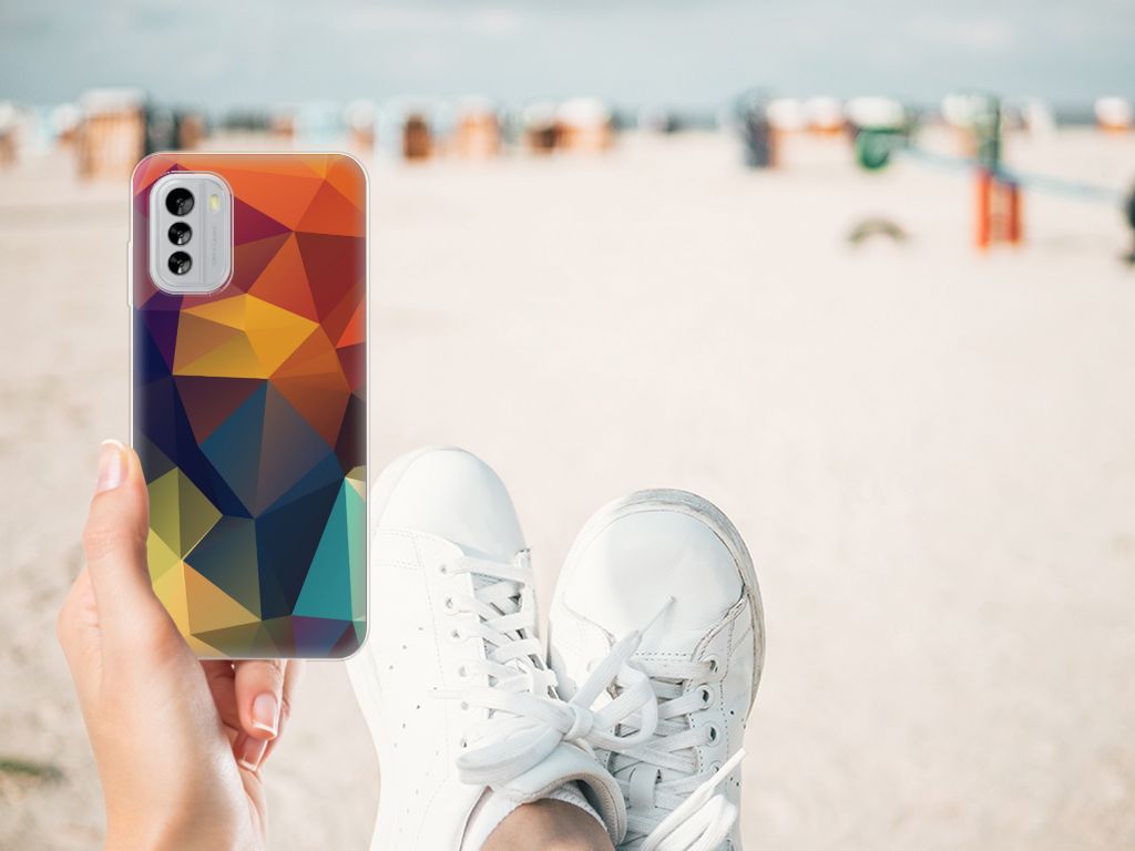 Veelkleurige driehoeken die samen eindeloze asymmetrische patronen lijken te vormen. Het is het abstracte schouwspel dat op dit fraaie hoesje voor je Nokia G60 direct de aandacht trekt noemen we voor het gemak trekt noemen we voor het gemak Polygon Color. De een ziet er een berglandschap in, de ander piramides. Wat zie jij erin? Zeker is in elk geval dat de aanblik van dit fascinerende ontwerp je niet snel gaat vervelen. Het kleurige spel van lijnen en vlakken blijft eindeloos boeien en geeft jouw TPU Hoesje een hippe en kunstzinnige uitstraling. De kracht die het lijnenspel uitstraalt, komt ook terug in het hoesje zelf. Dit hoesje wordt alleen aan de bovenkant bedrukt en is zeer flexibel. De randen van het hoesje blijven transparant. Wat wil je nog meer?