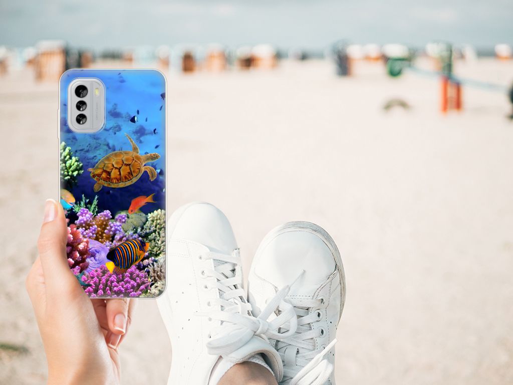 Dit kleurrijke hoesje met tropische Vissen is een ware eyecatcher. Als je aan het duiken bent en je treft een school aan met dit soort opvallende vissen, dan heb je een geweldige ervaring. Maar je hoeft er eigenlijk niet per se het water voor in te duiken. Want wij hebben een schitterende verzameling vissen op dit design hoesje gezet. Met onze zeer geavanceerde printer zetten we de afbeelding van vissen op de bovenkant van de Nokia G60 TPU Hoesje, de randen blijven transparant. De case is gemaakt van zeer elastisch en onbreekbaar materiaal. Verder is je telefoon natuurlijk goed beschermd met deze tpu case met print van vissen. Deze case heeft tevens opstaande randen, waardoor je scherm de grond niet zal raken als de smartphone uit je handen valt.