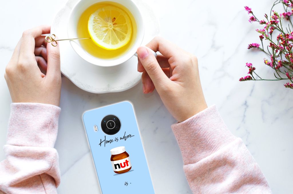 Ben je liefhebber van chocoladepasta, dan is dit het perfecte Nokia X10 | X20 Siliconen Case voor jou. De chocoladepasta is enorm populair, dus is het niet zo heel gek dat je een ‘Nut Home’ tpu case in een blauwe kleur aantreft in ons assortiment design hoesjes met illustraties. Dit tpu hoesje is zeer flexibel en past altijd in je broekzak. Alleen de bovenkant van dit hoesje wordt door ons bedrukt in blauwe kleur met de pasta, op zeer duurzame manier. Mensen die houden van de bekendste pasta van het moment, kiezen voor deze blauwe tpu case. Er staan geen illustraties op de zijkanten van een tpu case. Je kunt ook een eigen tekst toevoegen aan het opvallende design.