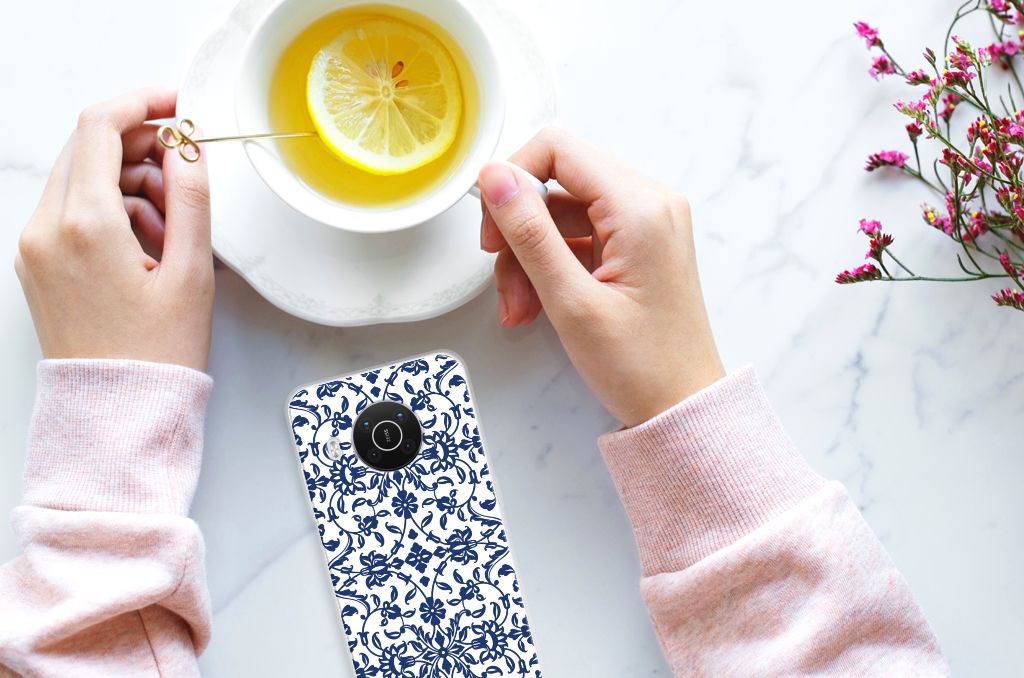 Een plaatje, deze Nokia X10 | X20 TPU Case met Flower Blue patroon, die jouw telefoon van een hele mooie uitstraling voorziet. We hebben verschillende soorten patronen in de aanbieding waarmee we jouw hoesje kunnen verrijken, maar dit is wel een van de fraaiste. Maar natuurlijk heeft iedereen zo zijn eigen smaak. Vandaar dat we nog allerlei andere patronen kunnen aanbieden in de leukste kleurencombinaties. Het tpu hoesje met blauwwit patroon beschermt jouw telefoon vooral aan de achterkant en zijkanten en heeft opstaande randen aan de voorkant. De tpu case is zeer flexibel dankzij het elastische materiaal. Wij bedrukken de case in eigen beheer. De zijkanten van de tpu case blijven transparant en krijgen dus geen blauwwit patroon. Alleen de achterzijde van de hoes wordt bedrukt. Heb je een rijke fantasie? Ontwerp dan je eigen design hoesje met favoriet patroon.