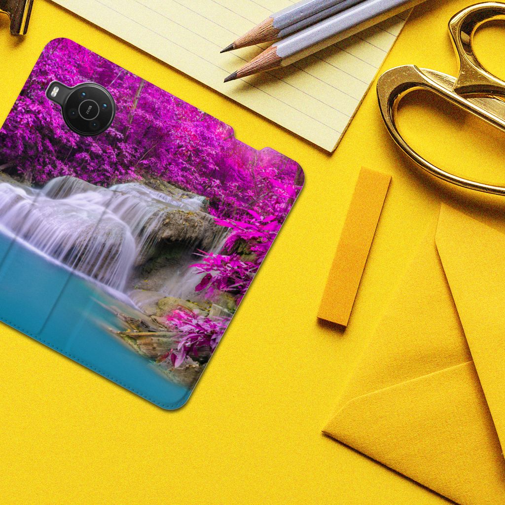 Van een waterval kun je een heel rustig gevoel krijgen, zeker als die op een Nokia X20 | X10 Book Cover staat dat jouw smartphone perfect beschermt tegen allerlei vormen van schade zoals krassen, barsten en scheuren. In de buurt van een waterval ben je tijdens warme zomerdagen niet alleen verzekerd van aangename verkoeling, het is ook een bijzonder rustgevende ervaring. Uit onderzoek blijkt zelfs dat watervallen een helend effect hebben op allerlei aandoeningen. Extra bijzonderheid aan de stand case vormen de paarse bossen op de achtergrond. Dit smartphonehoesje beschermt jouw telefoon aan alle zijden en beschikt over een opbergvakje voor pasjes en briefgeld. De case sluit perfect af dankzij de magneten van binnen. De houder aan de binnenzijde is van TPU. Alle zijden van het hoesje worden bedrukt. Een mooiere waterval met paarse achtergrond kom je op geen enkel ander hoesje tegen.