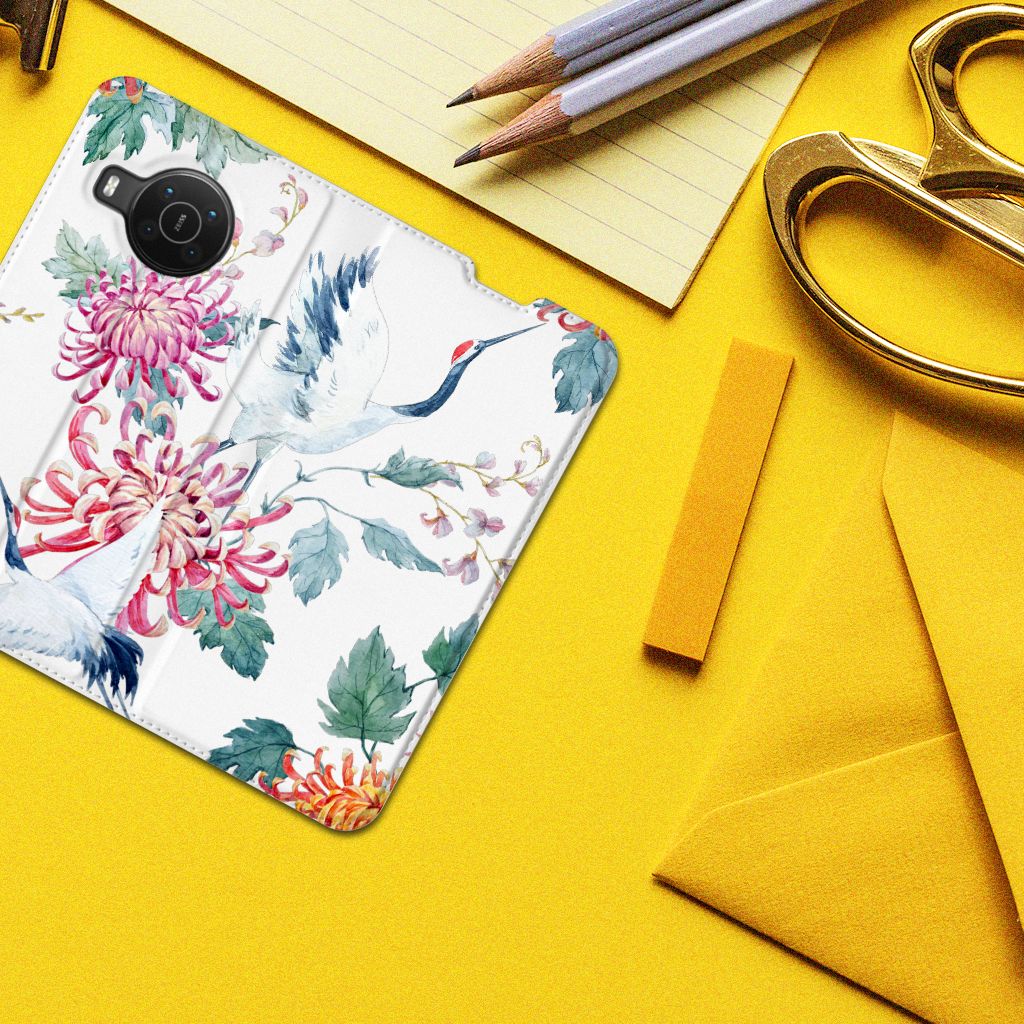 Verspreid over de hele wereld leven 19 soorten ooievaars. De spanwijdte – dat is de afstand van vleugeltip tot vleugeltip – van een volwassen ooievaar kan 2.50 meter bedragen. De gebieden waarin de ooievaar broedt, liggen in heel Europa, het Midden-Oosten, West- en Centraal-Azië en Noordwest-Afrika. Het ideale leefgebied van de ooievaar is een half open tot open landschap met veel afwisseling in grondgebruik en begroeiing. De begroeiing op dit design hoesje, in allerlei verschillende kleuren, zal niet alleen voor de ooievaars fraai zijn. Jij zult er zelf ook heel vrolijk van worden. Het in het oog springende design staat op een Hoesje maken. Deze case beschermt jouw Nokia X20 | X10 aan alle kanten en beschikt over een 1 opbergvakje en een speciale standaard. Het hoesje wordt afgesloten met een magneet aan de binnenzijde. De houder aan de binnenzijde is van TPU. Alle zijden van de stand case worden bedrukt.