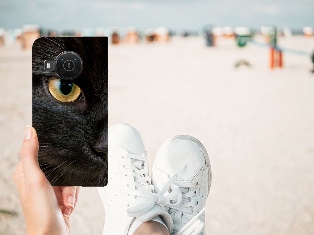 warte katten zijn heel speciaal, vandaar we een exemplaar op een design hoesje hebben gezet. Een zwarte kat schijnt bijvoorbeeld veel beter te kunnen horen dan witte katten. Deze zwarte kat staat op zeer prominente wijze op een stand case. Een Nokia X20 | X10 Hoesje maken met zwarte kat beschermt jouw smartphone aan alle zijden en wordt ook volledig bedrukt. De stand case met zwarte kat ziet er geweldig uit en is voorzien van verschillende uitsparingen en een speciale standaard. Alle zijden van de case zijn bedrukt. Dit design hoesje is van TPU aan de binnenzijde en zeer flexibel. Verder heeft de case een houder voor een pasje.