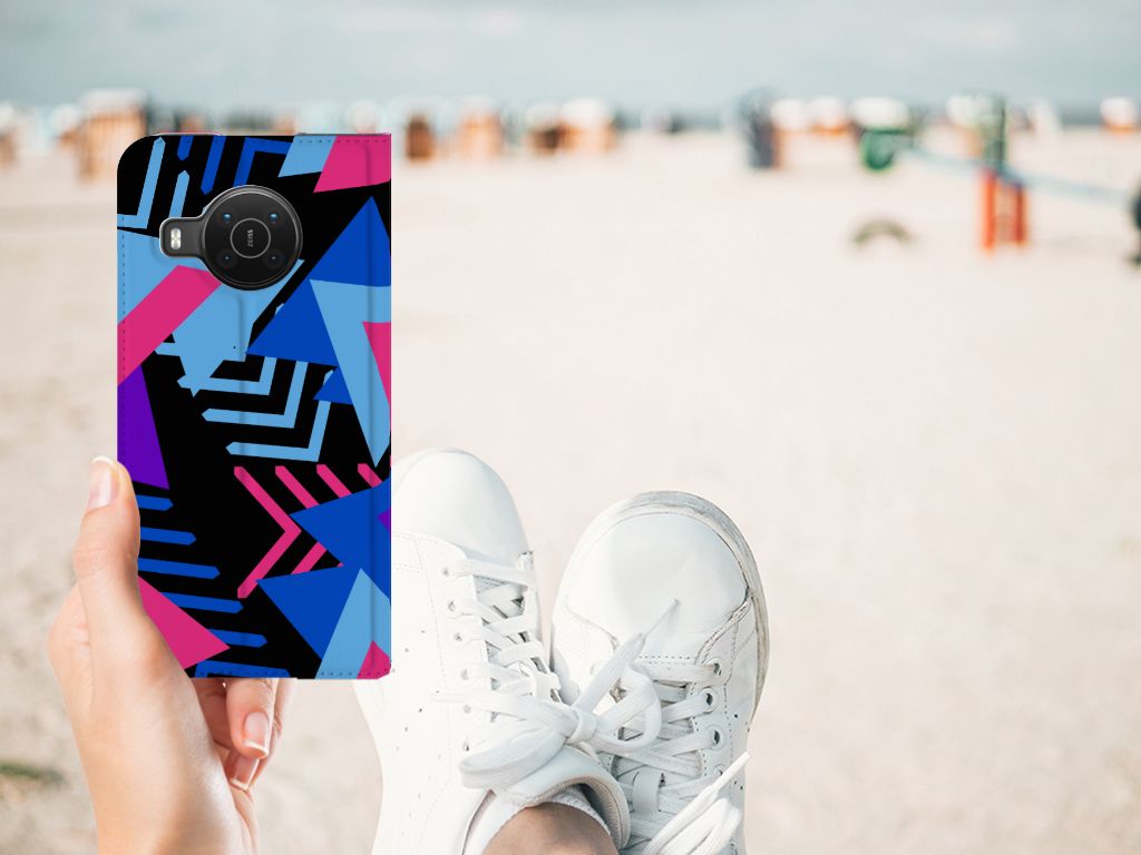 Dit fraaie hoesje met het design Funky Triangle is alles behalve eenvoudig en sober. Dat komt goed uit, want je hebt natuurlijk ook geen doorsnee telefoon gekocht. Mocht je dat wel hebben gedaan, dan wordt hij meteen speciaal als je een Nokia X20 | X10 Stand Case koopt voor een spotprijsje. Een ding is zeker: opvallen ga je beslist met dit hoesje met paarse, roze en blauwe driehoeken. Jij zult in je element zijn met dit design hoesje met paarse, roze en blauwe driehoeken, omdat het er schitterend uitziet en jouw telefoon perfect beschermt. Het smartphonehoesje beschermt jouw telefoon aan alle zijden en beschikt over 1 opbergvakje en een speciale standaard. Het hoesje wordt afgesloten met een magneet aan de binnenzijde. De houder aan de binnenzijde is van TPU. Alle zijden van de stand case worden bedrukt. De paarse, roze en blauwe driehoeken maken de case helemaal af.