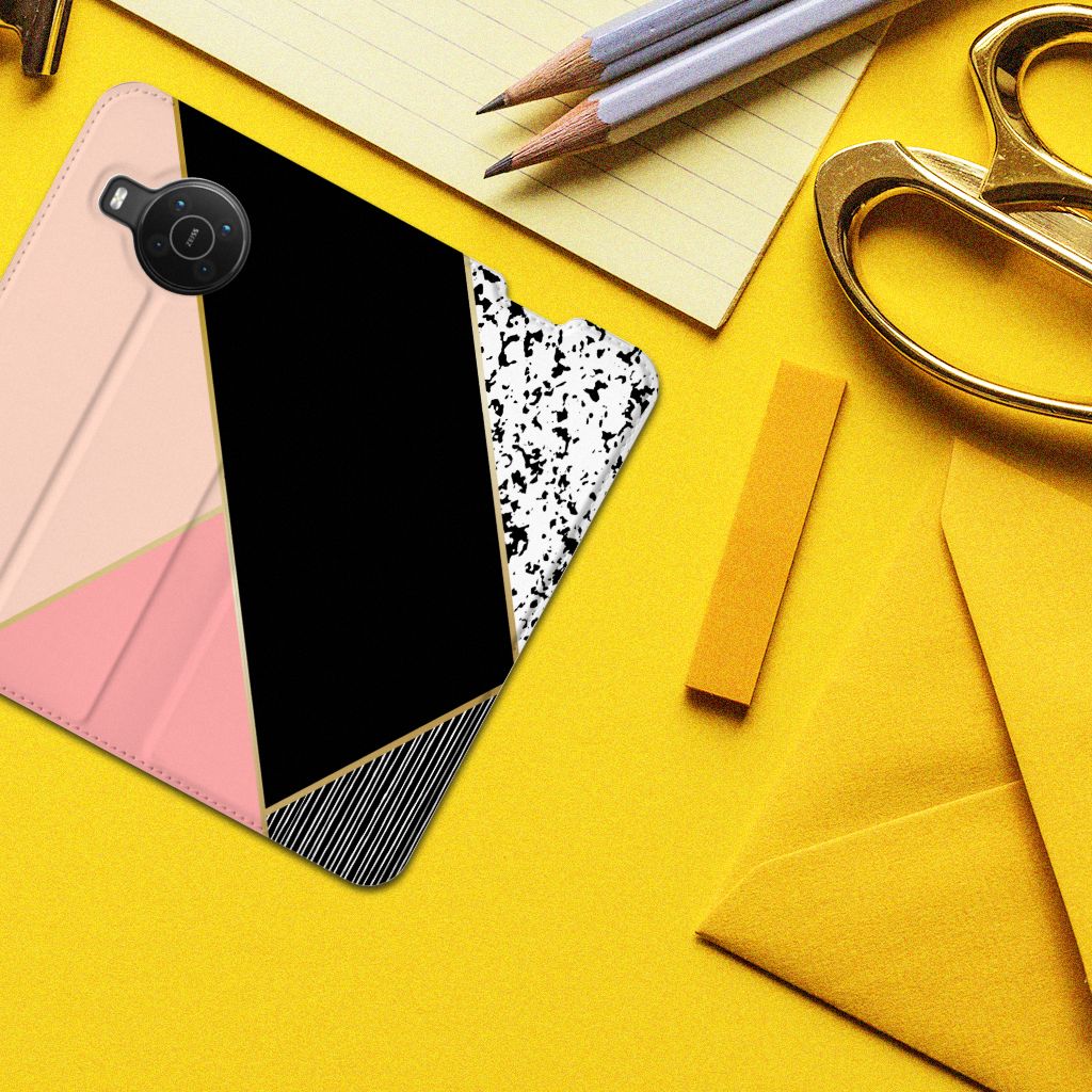 Nokia X20 | X10 Print Stand Case Zwart Roze Vormen