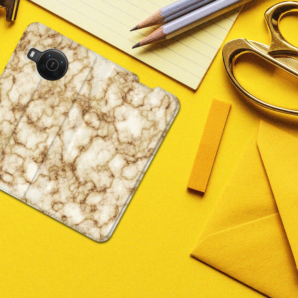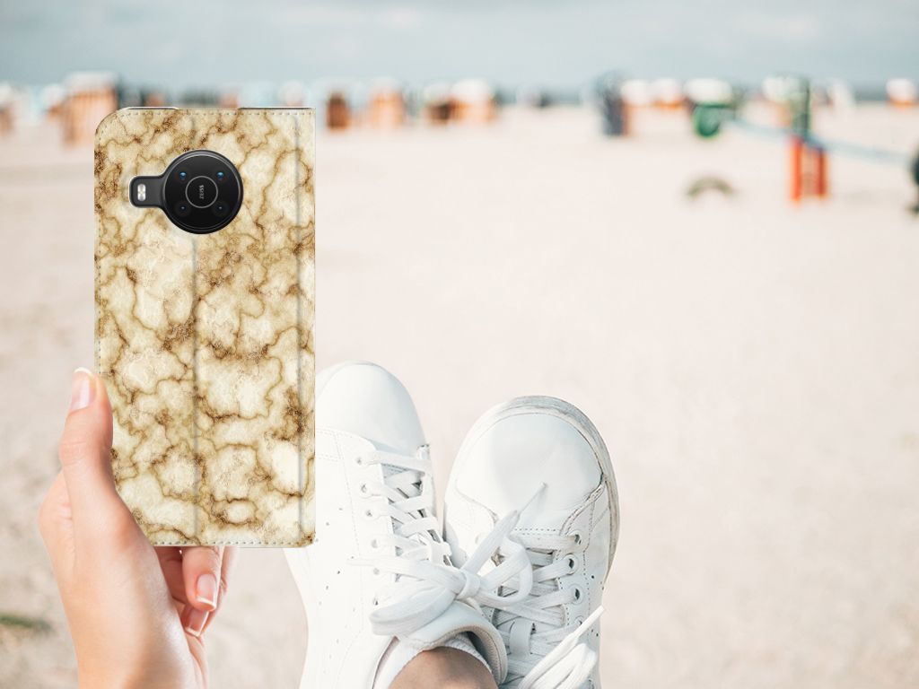 Deze Nokia X20 | X10 Standcase met Marmer Goud is het waard om een blokje voor om te rijden. Dit is overigens niet nodig. Als je het hoesje met goud marmer nu bestelt heb je het zeer snel in huis. Je kunt er bij wijze van spreken thuis op gaan zitten wachten. Je hebt diverse soorten marmer. We hebben enkele fraaie kleuren op onze hoesjes gezet, zoals in dit geval het gouden marmer. Het gouden marmer wordt bedrukt op alle zijden van de stand case, die beschikt over een vakje voor pasjes of briefgeld en een magnetische sluiting aan de binnenzijde. Verder heeft de case met goud marmer een houder van TPU. De rijkheid aan kleuren en variaties in afwerking is een schitterende eigenschap van marmer. Dit stand hoesje met goud marmer heeft ook veel schitterende eigenschappen en is de ideale bescherming voor jouw smartphone.