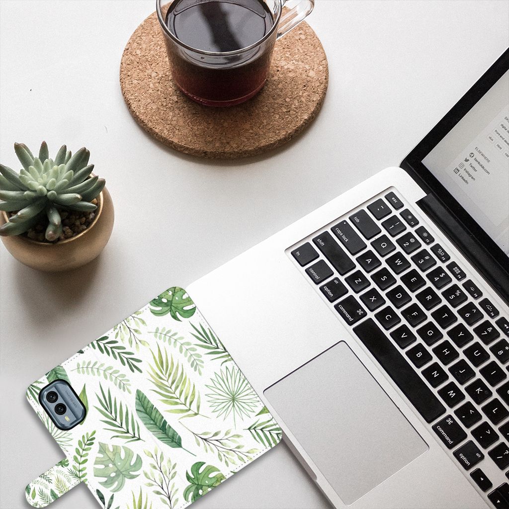 Nokia X30 Hoesje met ruimte voor pasjes Leaves