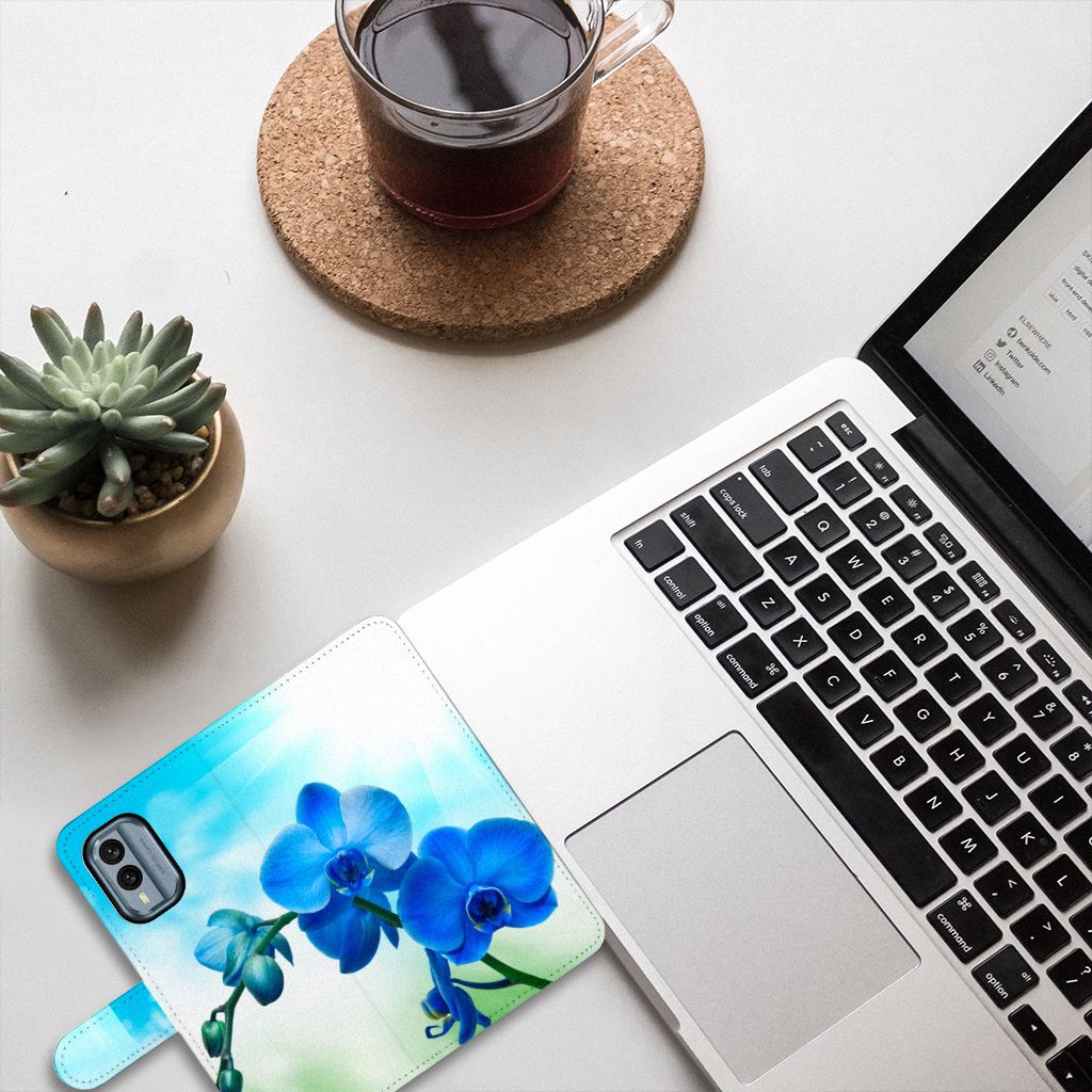 Nokia X30 Hoesje met magnetische sluitclip Orchidee Blauw