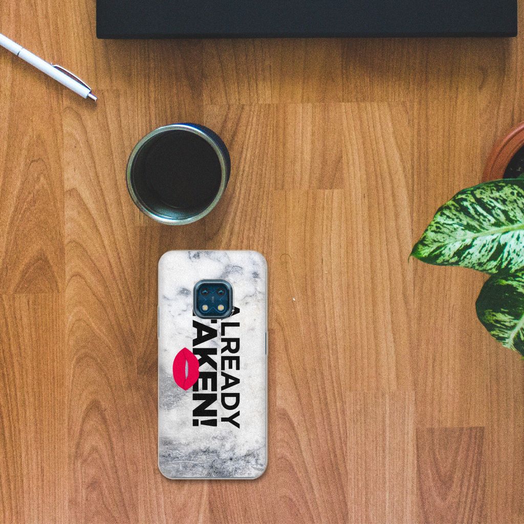 Stel dat je opdringende vrouwen of mannen van je af wil schudden op het moment dat je aan het feesten bent, omdat je al een partner hebt. Dan kun je dat met dit hoesje uitstekend duidelijk maken. Je Nokia XR20 neem je waarschijnlijk vaak ter hand, dus dan zal de boodschap als je over dit hoesje beschikt zeker weten overkomen. Ook in het openbaar vervoer zal dit hoesje ervoor zorgen dat je minder snel versierd wordt door het andere geslacht. Als je vrijgezel bent en op zoek naar gezelschap, dan kun je beter kiezen voor een ander hoesje uit ons ruime en gevarieerde assortiment. Het design Already Taken White staat op een Siliconen hoesje met naam. Dit hoesje wordt alleen aan de bovenkant bedrukt en is zeer flexibel. De randen van het hoesje blijven transparant.