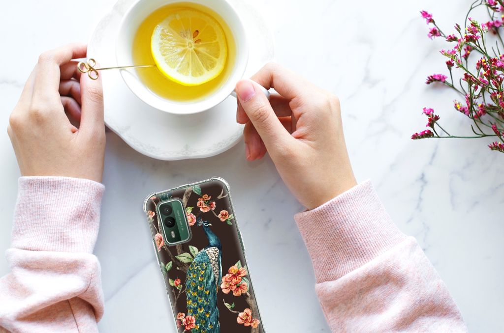 Telefoonhoesje met Pasjes voor Nokia XR21 Pink Peacock