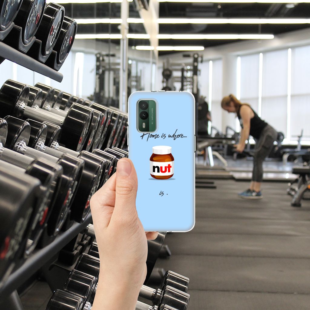 Ben je liefhebber van chocoladepasta, dan is dit het perfecte Nokia XR21 Siliconen Case voor jou. De chocoladepasta is enorm populair, dus is het niet zo heel gek dat je een ‘Nut Home’ tpu case in een blauwe kleur aantreft in ons assortiment design hoesjes met illustraties. Dit tpu hoesje is zeer flexibel en past altijd in je broekzak. Alleen de bovenkant van dit hoesje wordt door ons bedrukt in blauwe kleur met de pasta, op zeer duurzame manier. Mensen die houden van de bekendste pasta van het moment, kiezen voor deze blauwe tpu case. Er staan geen illustraties op de zijkanten van een tpu case. Je kunt ook een eigen tekst toevoegen aan het opvallende design.