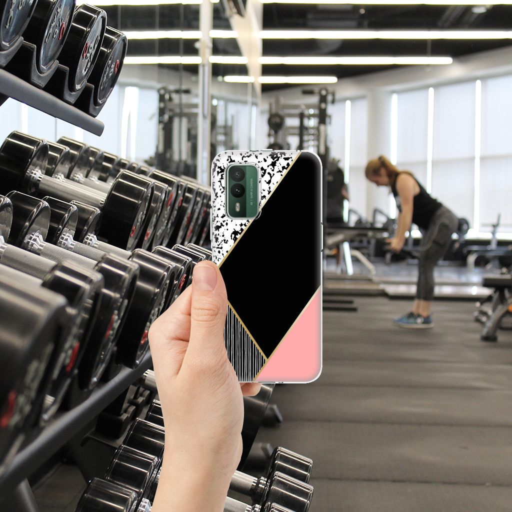 TPU Hoesje Nokia XR21 Zwart Roze Vormen Design