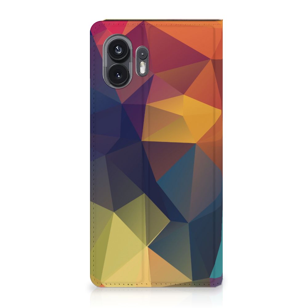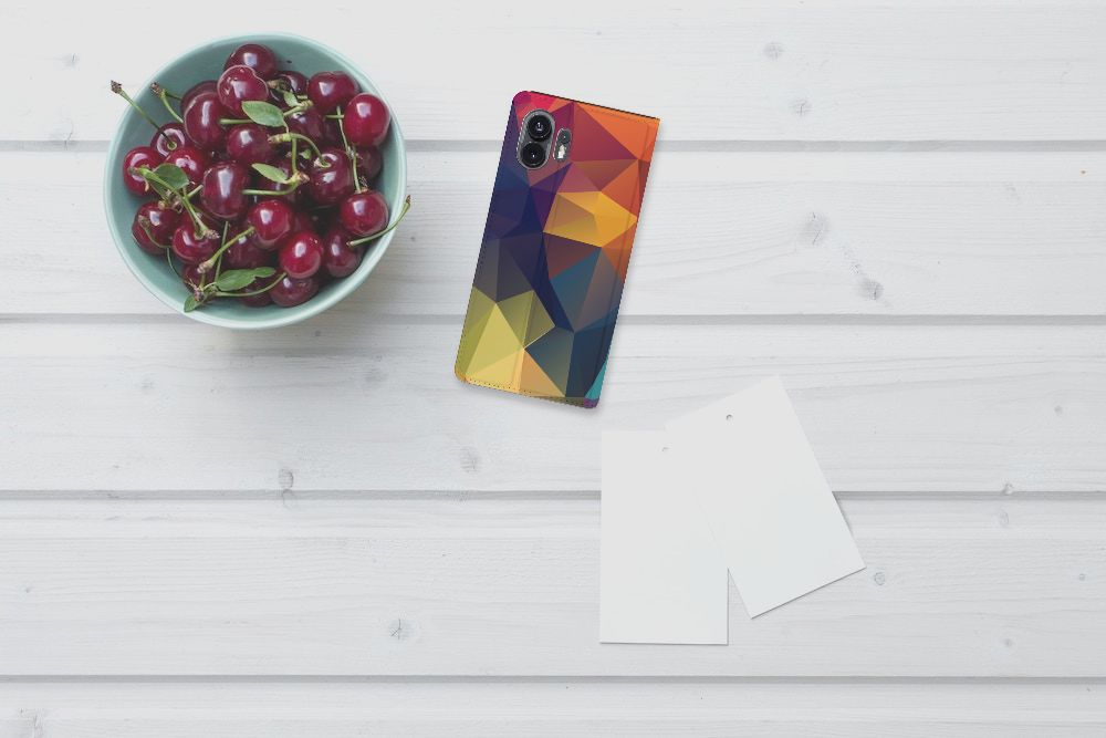 Veelkleurige driehoeken die samen eindeloze asymmetrische patronen lijken te vormen. Het is het abstracte schouwspel dat op dit fraaie hoesje voor je Nothing Phone (2) direct de aandacht trekt noemen we voor het gemak trekt noemen we voor het gemak Polygon Color. De een ziet er een berglandschap in, de ander piramides. Wat zie jij erin? Zeker is in elk geval dat de aanblik van dit fascinerende ontwerp je niet snel gaat vervelen. Het kleurige spel van lijnen en vlakken blijft eindeloos boeien en geeft jouw Stand Case een hippe en kunstzinnige uitstraling. De kracht die het lijnenspel uitstraalt, komt ook terug in het hoesje zelf. De solide hoes van PU-leer beschikt ook over een 1 pashouder en een speciale standaard. Het hoesje wordt afgesloten met een magneet aan de binnenzijde. De houder aan de binnenzijde is van TPU. Alle zijden worden bedrukt.