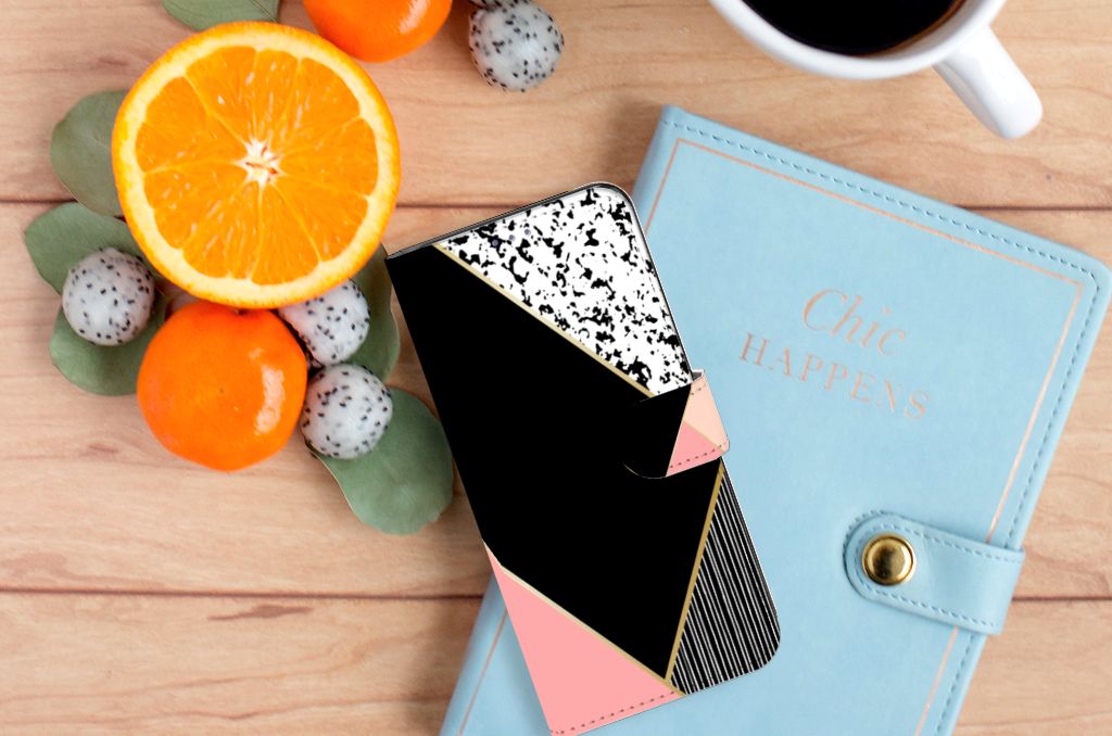OnePlus 10 Pro Bookcase met ruimte voor 3 pasjes Zwart Roze Vormen