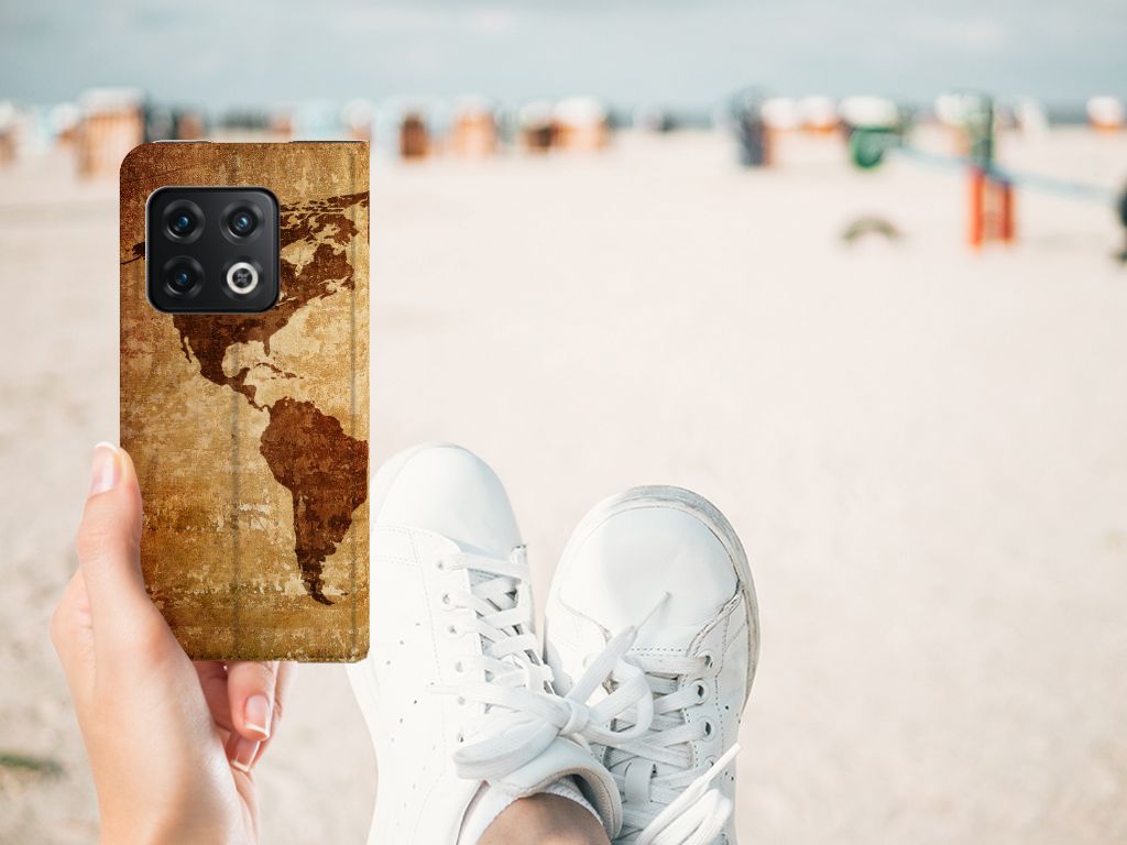 Als je een hoesje koopt met een wereldkaart, kun jij op veilige wijze met je smartphone rond de wereld reizen. Ga je zonder een boekhoesje met wereldkaart het buitenland verkennen, dan loop je veel te groot risico dat je stukken krijgt aan je smartphone. Met als gevolg dat je de belangrijke gebeurtenissen op je reis wellicht niet meer vast kunt leggen om door te sturen aan je vrienden. In het slechtste geval wordt jouw toestel zonder een smartphone hoesje met wereldkaart onbruikbaar. Wij kunnen de wereldkaart bedrukken op een stand case. Een OnePlus 10 Pro Book Cover beschermt jouw telefoon aan alle kanten en beschikt over een 1 opbergvakje en een speciale standaard. Het hoesje wordt afgesloten met een magneet aan de binnenzijde. De houder aan de binnenzijde is van TPU. Dit stand hoesje met wereldkaart is voor een zeer laag bedrag te bestellen.