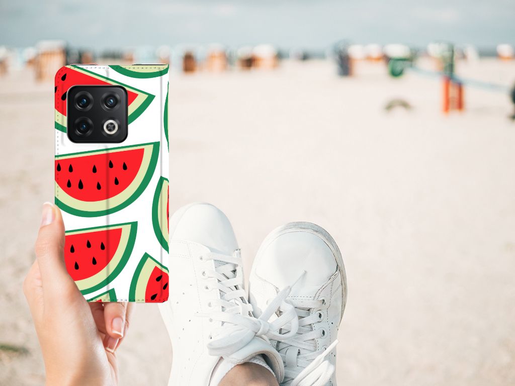 Watermeloenen zijn uitstekende dorstlessers, misschien dat je daarom juist in de zomermaanden extra enthousiast raakt van dit design hoesje Watermelons. Jij blijft gezond als je zo nu en dan een watermeloen neemt, jouw smartphone blijft in tact als je er deze OnePlus 10 Pro Flip Style Cover omheen doet. De stand case beschermt jouw telefoon aan alle kanten en beschikt over een 1 opbergvakje en een speciale standaard. Het hoesje wordt afgesloten met een magneet aan de binnenzijde. De houder aan de binnenzijde is van TPU. Je kunt ook kiezen voor andere soorten fruit op je hoesje. Kijk maar eens naar onze andere design hoesjes op onze website.