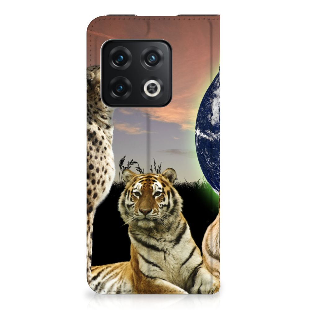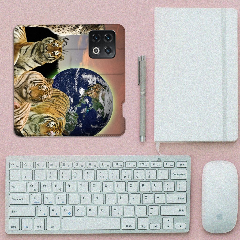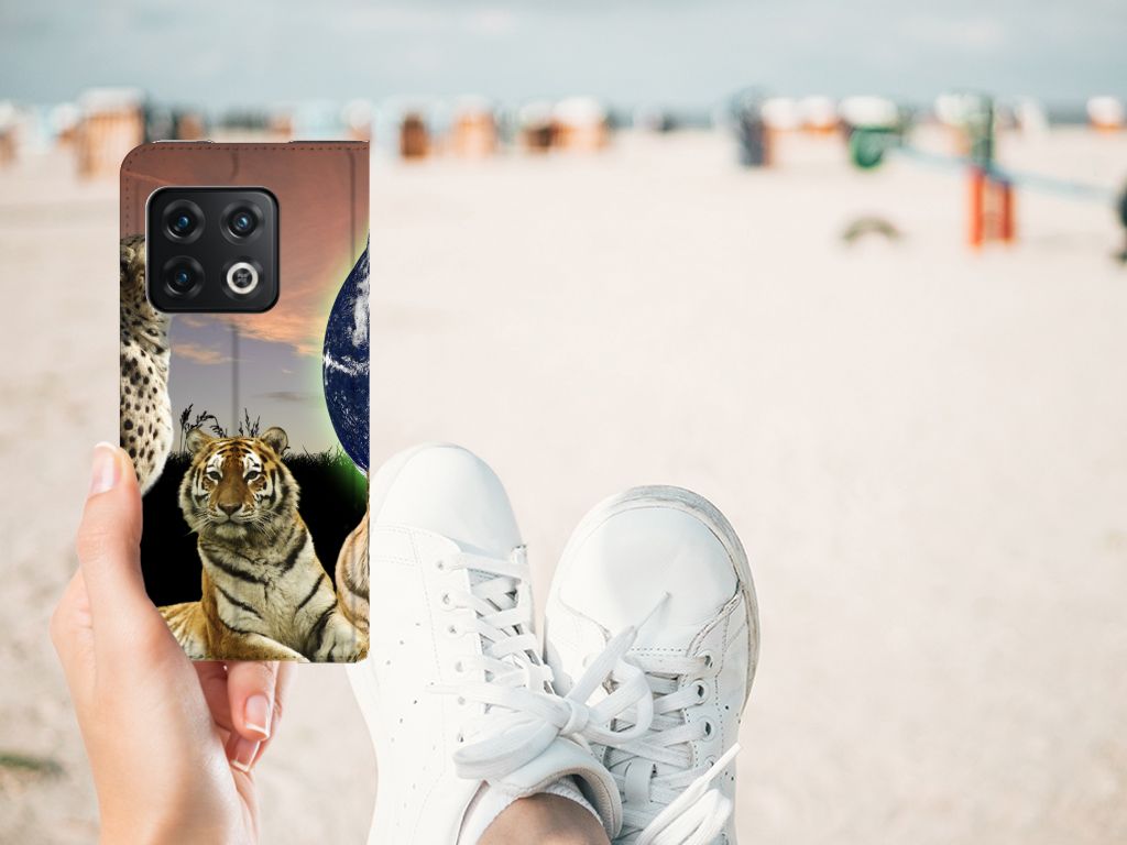Deze standcase met roofdieren kan exclusief in het bezit van jou komen. Bovendien kun je hier zelf nog unieke teksten en/of beelden aan toevoegen. Je Hoesje maken krijgt dan een unieke identiteit. Roofdieren zoals tijgers op dit hoesje zijn voortdurend op zoek naar een geschikte prooi. De tijgers met aardbol op de achtergrond op deze stand case geven jouw OnePlus 10 Pro een hele stoere uitstraling. Deze bijzondere case is van PU-leer (buitenzijde) en TPU (binnenzijde) en beschikt over een houder en een speciale standaard. Verder is deze stand case met roofdieren voorzien van een magnetische sluiting aan de binnenzijde. Je zorgt voor de perfecte bescherming van je smartphone met dit design hoesje met roofdieren met aardbol op de achtergrond.