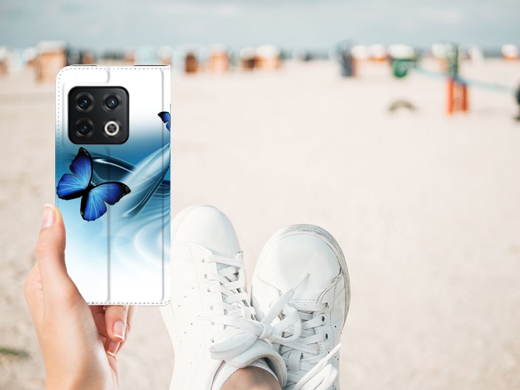 Deze vrolijke OnePlus 10 Pro Hoesje maken met blauwe vlinders is een ware eyecatcher. De meeste vlinders hebben een onopvallende vleugelkleur, andere soorten hebben juist heldere en felle kleuren. Wij kunnen deze blauwe vlinders op een zeer handige stand case zetten. Deze hoesjes zijn het meest gewild. Met onze geavanceerde printer zetten we de afbeelding van vlinders op alle zijden van het hoesje. De case met vlinders heeft aan de binnenkant een houder waarin je jouw creditcard of ander pasje kwijt kunt. De case heeft bovendien een handige standaard. Verder is je telefoon natuurlijk maximaal beschermd met deze stand case met print van blauwe vlinders. De houder aan de binnenzijde van het design hoesje met vlinder print is van TPU.