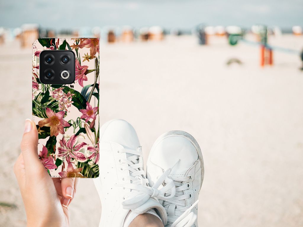 Dit Flowers design is een zegen voor de mens en zijn smartphone. De paarswitte bloemen en groene bladeren op deze OnePlus 10 Pro Smart Cover geven jouw smartphone een zeer sierlijke uitstraling. Je krijgt er meteen een goed gevoel bij als je aan het appen, mailen of aan het bellen bent. Valt dan je telefoon op de grond, dan zal er dankzij de stand case met paarswitte bloemen en groene bladeren geen schade ontstaan. Onze stand cases met paarswitte bloemen en groene bladeren bieden de allerbeste bescherming en zijn heel praktisch, wat blijkt uit onder meer het vakje aan de binnenkant en de handige standaard waarmee je de smartphone rechtop op tafel neer kunt zetten. De paarswitte bloemen en groene bladeren komen op alle zijden van de case te staan. Op deze stand case van leer en TPU (houder aan de binnenkant) kun je in no time zelf foto’s van jouw favoriete bloemen zetten.