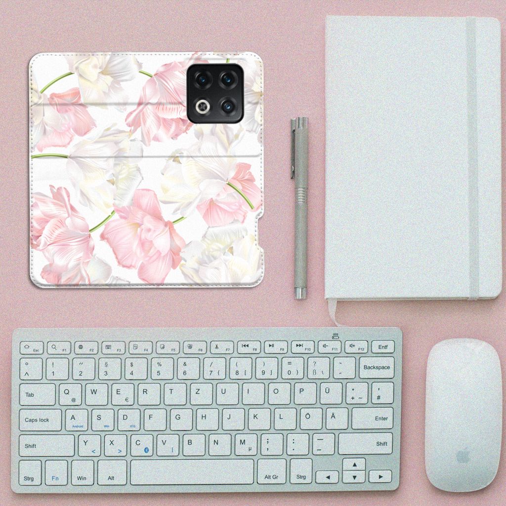 Een bosje bloemen doet een mens (en zijn smartphone) goed. De witte en roze bloemen op dit OnePlus 10 Pro Smart Cover geven jouw smartphone een zeer mooie uitstraling. Je wordt er ook meteen een stuk rustiger van als je aan het appen of aan het bellen bent. Valt dan je telefoon op de grond, dan zal er dankzij de stand case met het design Lovely Flowers ontstaan. Onze stand cases met roze en witte bloemen zien er zeer prettig uit en zijn heel praktisch, wat blijkt uit onder meer het vakje aan de binnenkant en de handige standaard waarmee je de smartphone rechtop op tafel neer kunt zetten. De roze en witte bloemen passen goed op alle zijden van de case. Op deze stand case van leer en TPU (houder aan de binnenkant) kun je trouwens ook je eigen bloemige ontwerp zetten. In een paar simpele stappen maak je zelf een stand hoesje met daarop jouw mooiste bloemen.