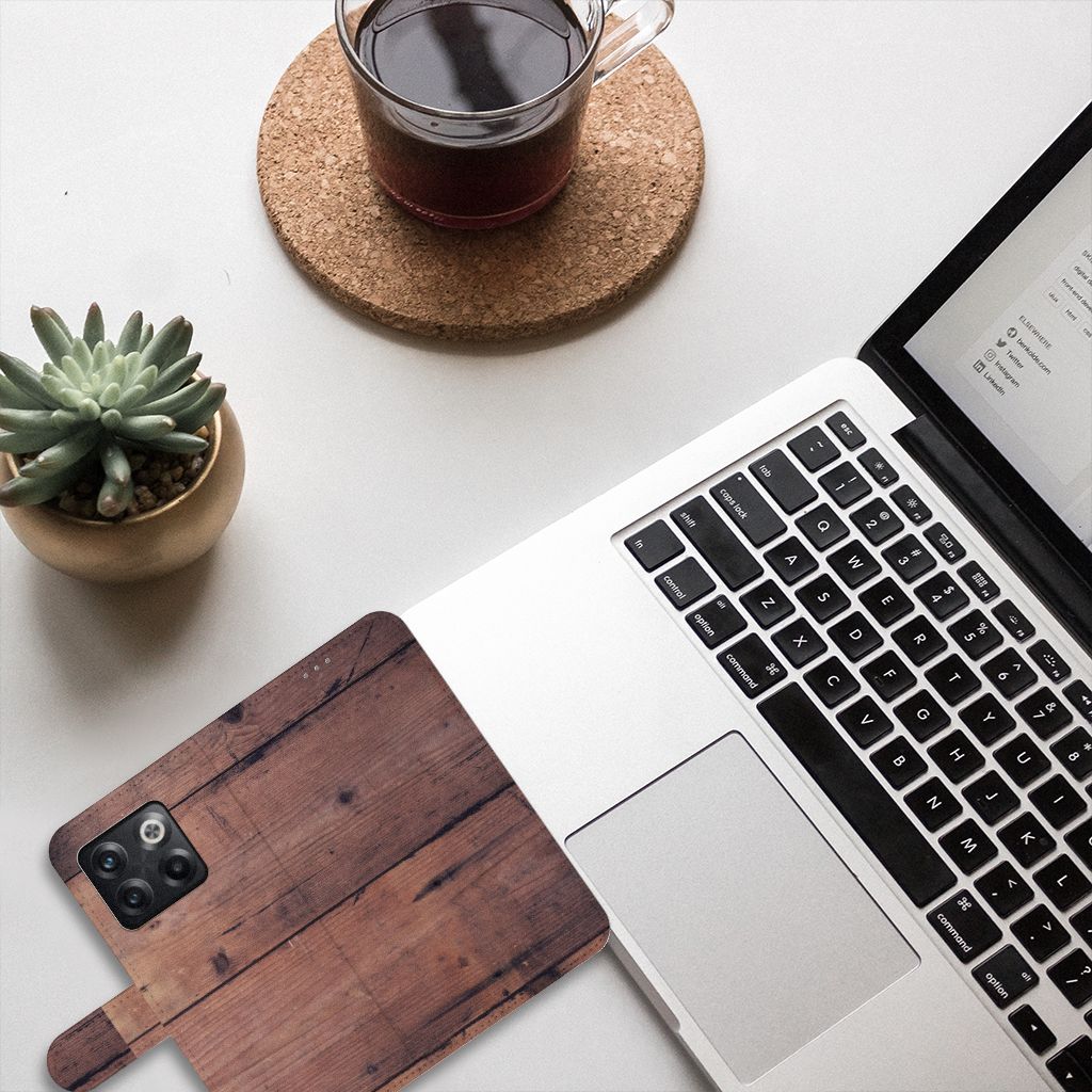 OnePlus 10T Bookstyle Case met pasjes Old Wood