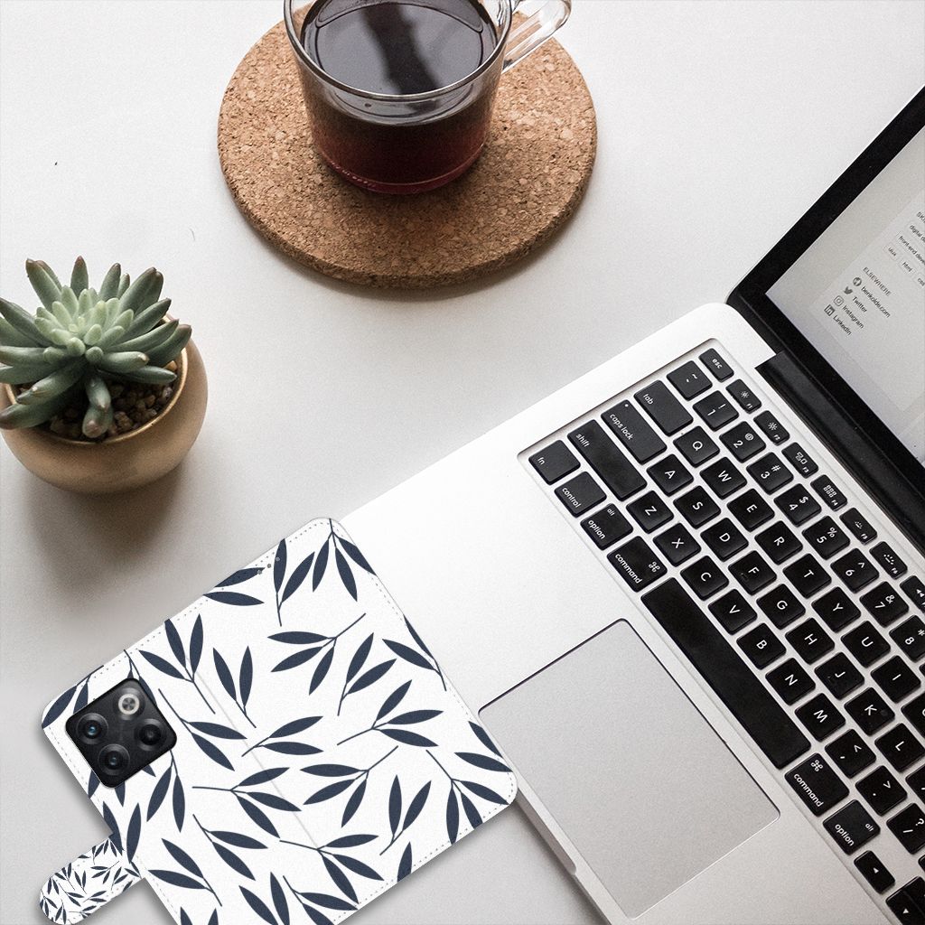 OnePlus 10T Hoesje met magnetische lipje als sluiting Leaves Blue
