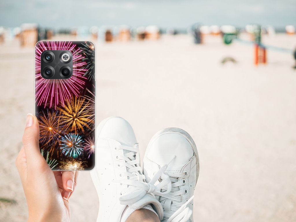 Deze OnePlus 10T Silicone Back Cover levert gegarandeerd Vuurwerk op. Kijk alleen al eens naar de print van siervuurwerk, in zeer veel verschillende kleuren. Als je dit hoesje ziet kun je bijna niet geloven dat sommige gemeenten in Nederland overwegen om vuurwerk te verbieden. Er gebeuren weliswaar ongelukken mee, maar zoiets schitterends als op deze tpu case met vuurwerk wil je toch gewoon niet missen. Bovendien beschermt dit hoesje jouw smartphone ook nog eens erg goed. De bovenkant van dit hoesje wordt bedrukt, de zijkanten blijven doorzichtig. De case is gemaakt van schokabsorberend materiaal en past altijd in je broekzak. Onder alle omstandigheden zal deze TPU case perfect functioneren, ook als je met nieuwjaar vuurwerk aan het afsteken bent. Zorg dan overigens wel dat je zelf ook voldoende afgeschermd bent van het vuurwerk.
