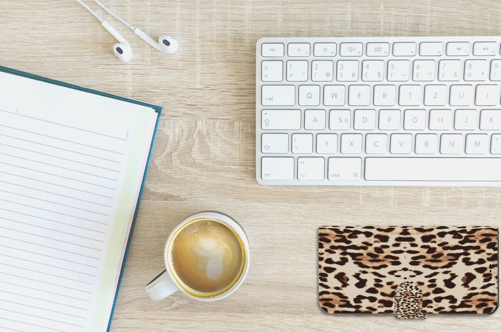 OnePlus 10T Telefoonhoesje met Pasjes en met magnetische sluitclip Leopard