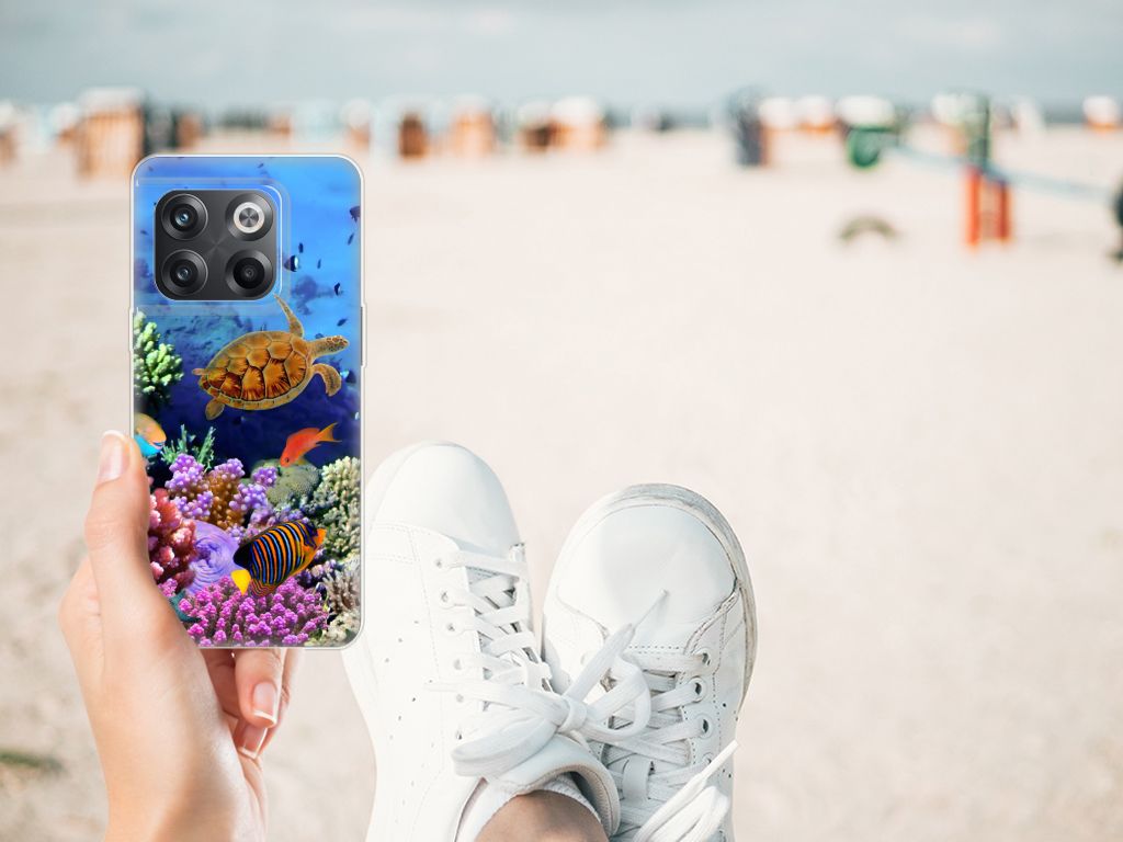 Dit kleurrijke hoesje met tropische Vissen is een ware eyecatcher. Als je aan het duiken bent en je treft een school aan met dit soort opvallende vissen, dan heb je een geweldige ervaring. Maar je hoeft er eigenlijk niet per se het water voor in te duiken. Want wij hebben een schitterende verzameling vissen op dit design hoesje gezet. Met onze zeer geavanceerde printer zetten we de afbeelding van vissen op de bovenkant van de OnePlus 10T TPU Hoesje, de randen blijven transparant. De case is gemaakt van zeer elastisch en onbreekbaar materiaal. Verder is je telefoon natuurlijk goed beschermd met deze tpu case met print van vissen. Deze case heeft tevens opstaande randen, waardoor je scherm de grond niet zal raken als de smartphone uit je handen valt.
