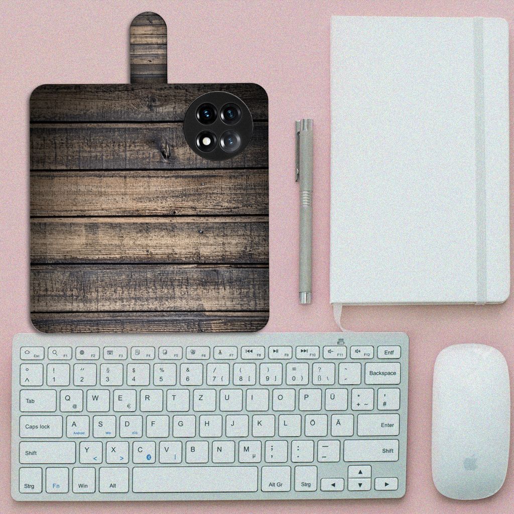OnePlus 11 Bookstyle Case met ruimte voor 3 pasjes Steigerhout