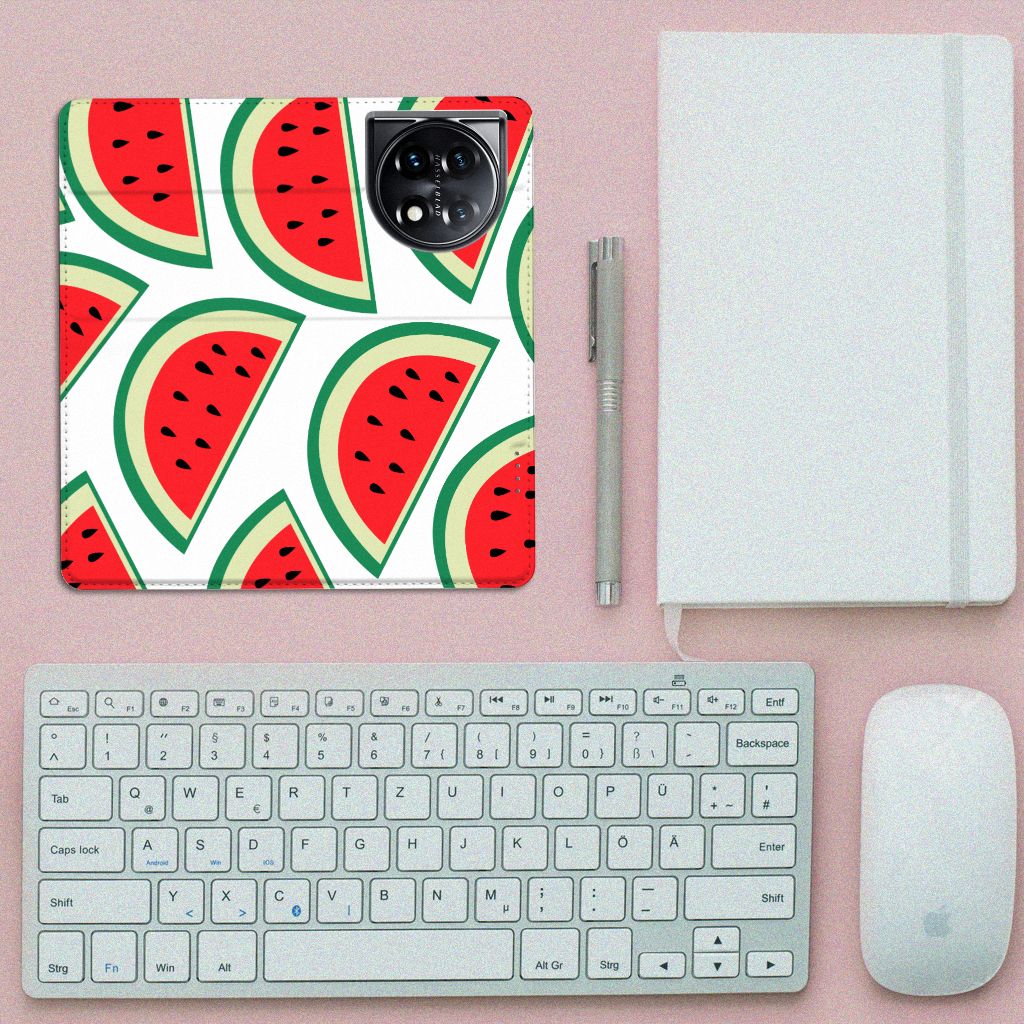 Watermeloenen zijn uitstekende dorstlessers, misschien dat je daarom juist in de zomermaanden extra enthousiast raakt van dit design hoesje Watermelons. Jij blijft gezond als je zo nu en dan een watermeloen neemt, jouw smartphone blijft in tact als je er deze OnePlus 11 Flip Style Cover omheen doet. De stand case beschermt jouw telefoon aan alle kanten en beschikt over een 1 opbergvakje en een speciale standaard. Het hoesje wordt afgesloten met een magneet aan de binnenzijde. De houder aan de binnenzijde is van TPU. Je kunt ook kiezen voor andere soorten fruit op je hoesje. Kijk maar eens naar onze andere design hoesjes op onze website.