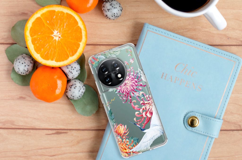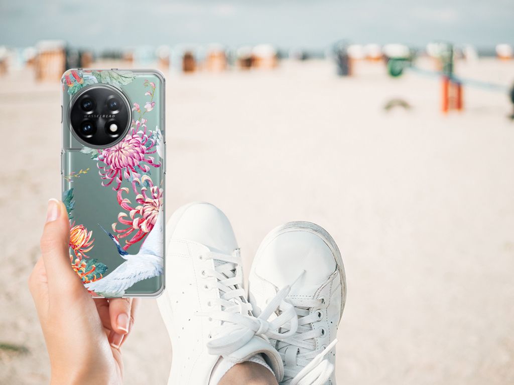 Verspreid over de hele wereld leven 19 soorten ooievaars. De spanwijdte – dat is de afstand van vleugeltip tot vleugeltip – van een volwassen ooievaar kan 2.50 meter bedragen. De gebieden waarin de ooievaar broedt, liggen in heel Europa, het Midden-Oosten, West- en Centraal-Azië en Noordwest-Afrika. Het ideale leefgebied van de ooievaar is een half open tot open landschap met veel afwisseling in grondgebruik en begroeiing. De begroeiing op dit design hoesje, in allerlei verschillende kleuren, zal niet alleen voor de ooievaars fraai zijn. Jij zult er zelf ook heel vrolijk van worden. Het in het oog springende design staat op een TPU Hoesje. Dit telefoonhoesje wordt alleen aan de bovenkant bedrukt en is zeer flexibel. De randen van het hoesje blijven transparant en worden niet bedrukt. Met dit hoesje past jouw OnePlus 11 altijd in je broekzak.