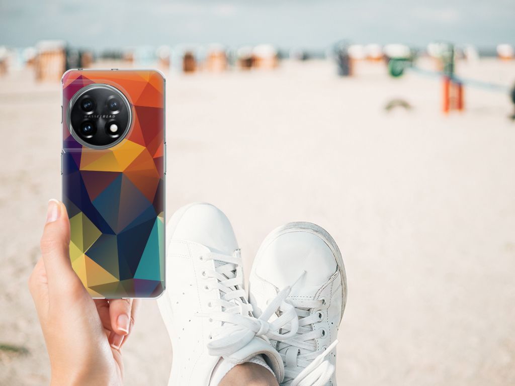 Veelkleurige driehoeken die samen eindeloze asymmetrische patronen lijken te vormen. Het is het abstracte schouwspel dat op dit fraaie hoesje voor je OnePlus 11 direct de aandacht trekt noemen we voor het gemak trekt noemen we voor het gemak Polygon Color. De een ziet er een berglandschap in, de ander piramides. Wat zie jij erin? Zeker is in elk geval dat de aanblik van dit fascinerende ontwerp je niet snel gaat vervelen. Het kleurige spel van lijnen en vlakken blijft eindeloos boeien en geeft jouw TPU Hoesje een hippe en kunstzinnige uitstraling. De kracht die het lijnenspel uitstraalt, komt ook terug in het hoesje zelf. Dit hoesje wordt alleen aan de bovenkant bedrukt en is zeer flexibel. De randen van het hoesje blijven transparant. Wat wil je nog meer?