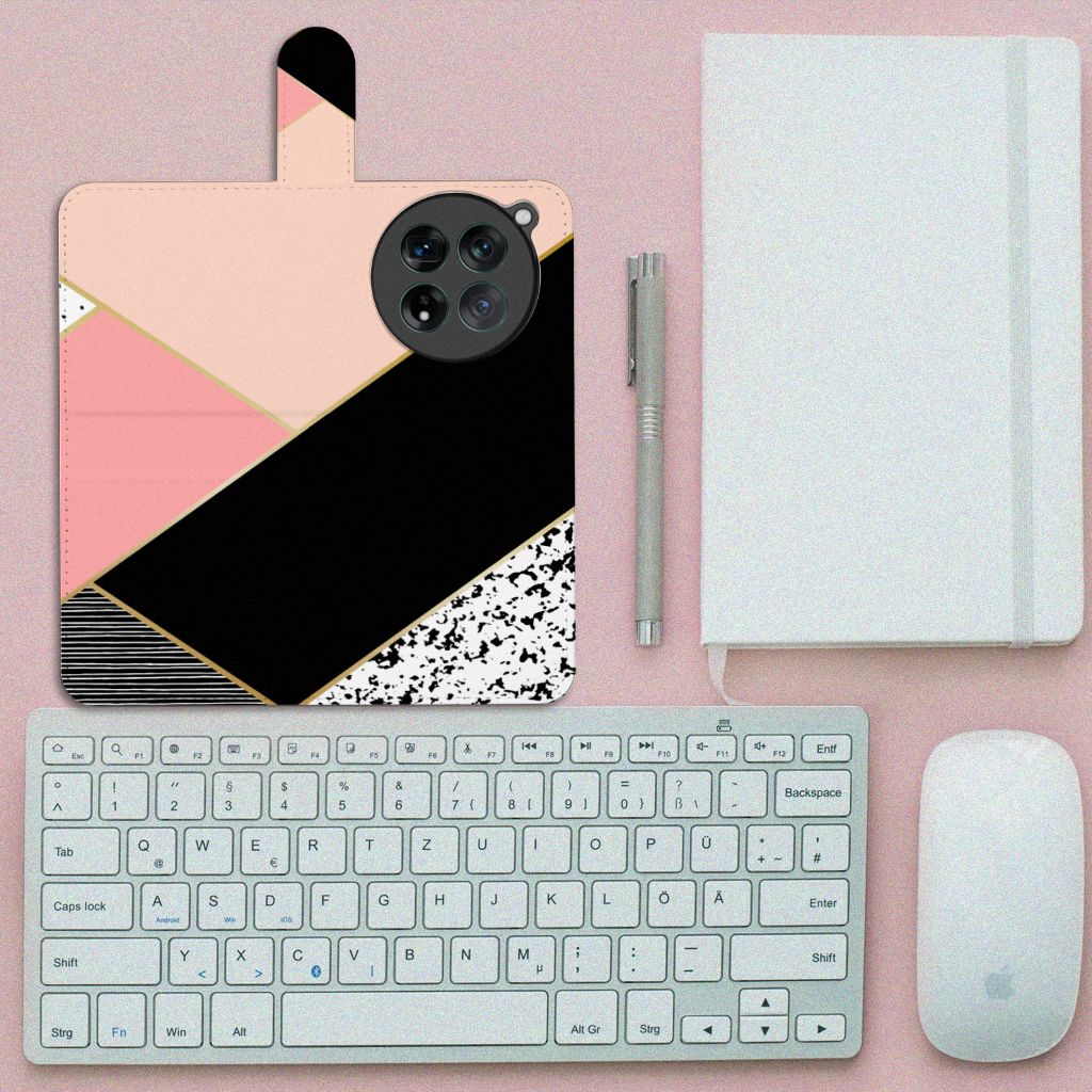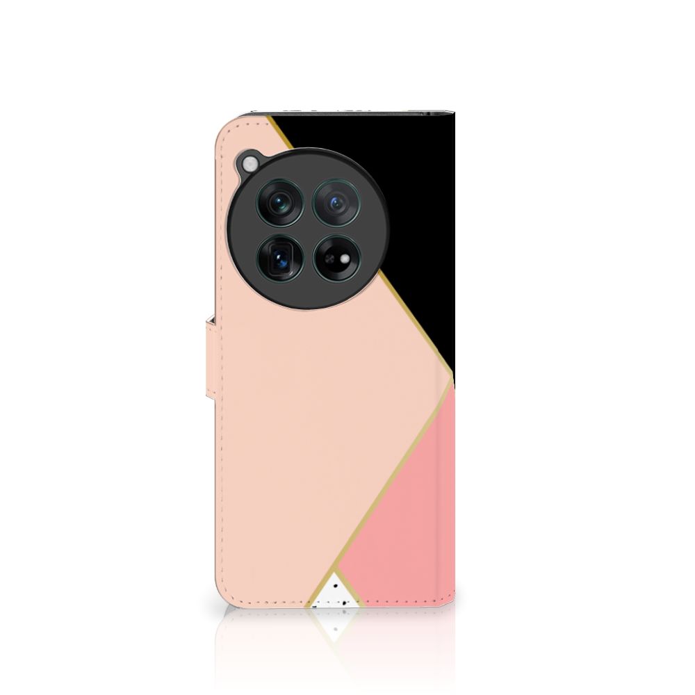 OnePlus 12 Bookcase met ruimte voor 3 pasjes Zwart Roze Vormen