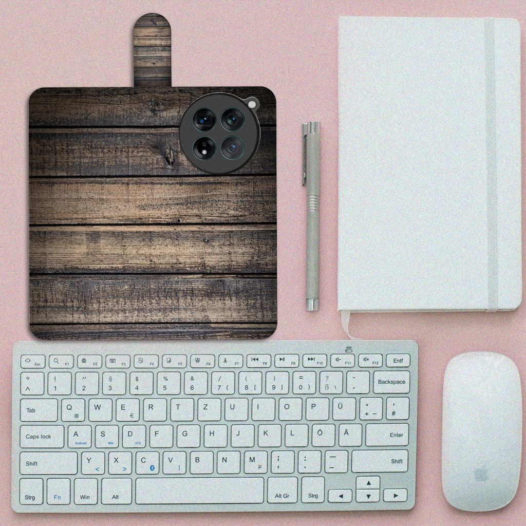 OnePlus 12 Bookstyle Case met ruimte voor 3 pasjes Steigerhout