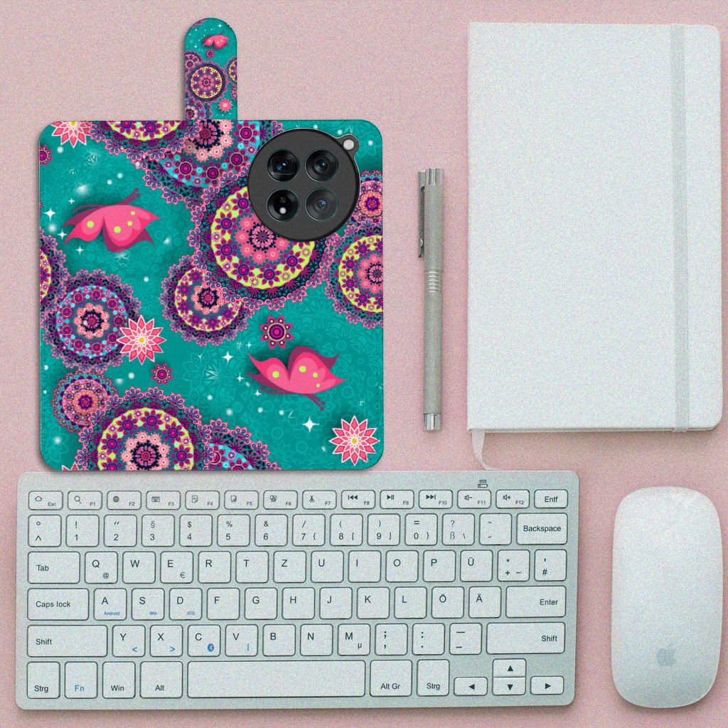 OnePlus 12 Hoesje met pasjes Cirkels en Vlinders