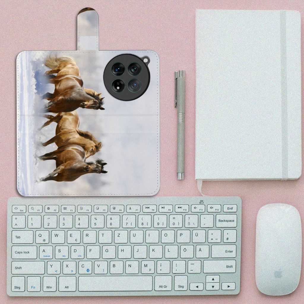 OnePlus 12 Telefoonhoesje magneetsluiting met lipje Paarden